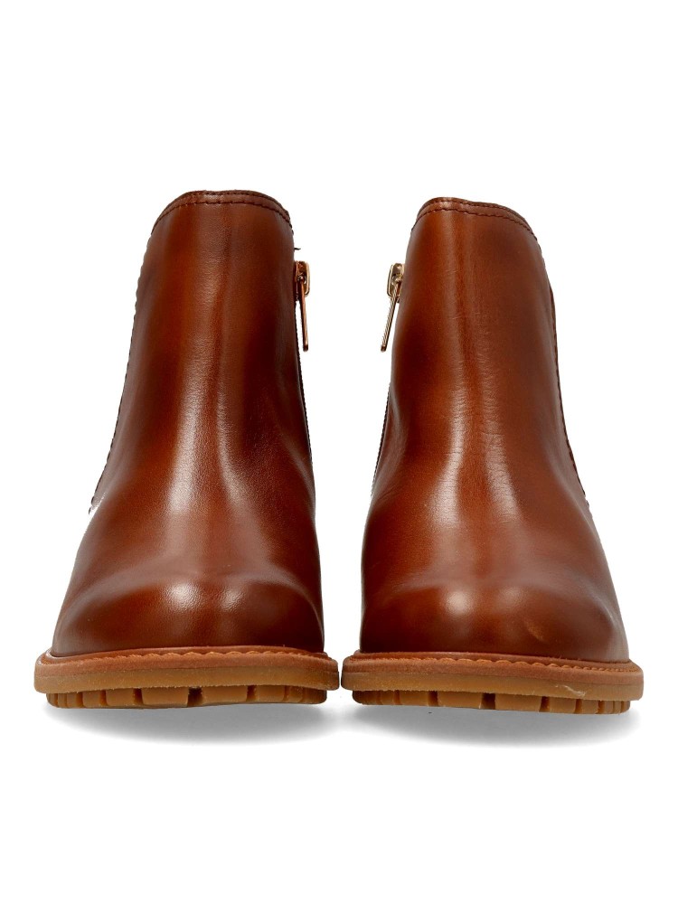 Botín cómodo de mujer Malaga. Cierre de cremallera lateral. Fabricado en 100% piel vacuno, con suela de goma. Plantilla acolchada. Altura tacón: 4,5 cm. Altura caña: 10 cm. Color cuero. Estilo, elegancia y confort, diseñados para una mujer moderna.