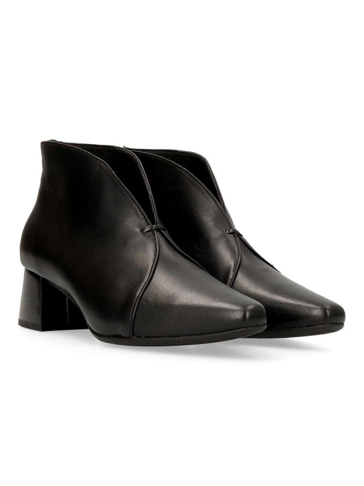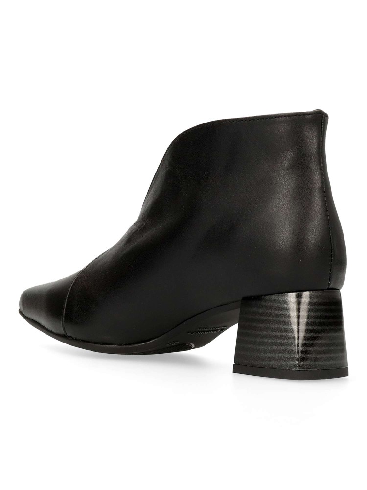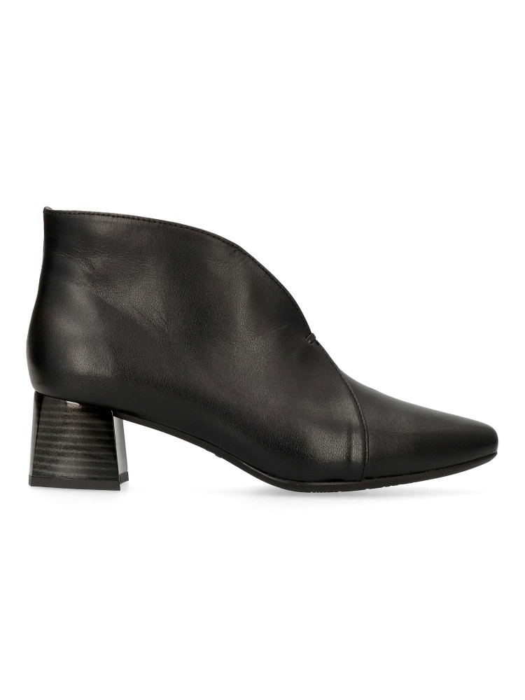 Botines de mujer con abertura delantera. Fabricados en piel de alta calidad. Tacon de 4,5 cm. Diseñados para la mujer moderna que busca destacar con cada paso, estos botines se convertirán en tu nuevo imprescindible para cualquier ocasión. Hecho en España