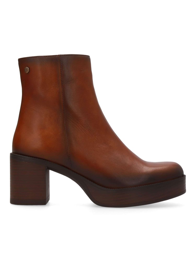 Botín de mujer con cierre de cremallera. Fabricado en piel con suela de goma. Plataforma y tacón de 6,5 cm. Eleva tus looks con un diseño versátil que suma elegancia y carácter a tus outfits.