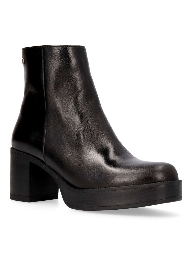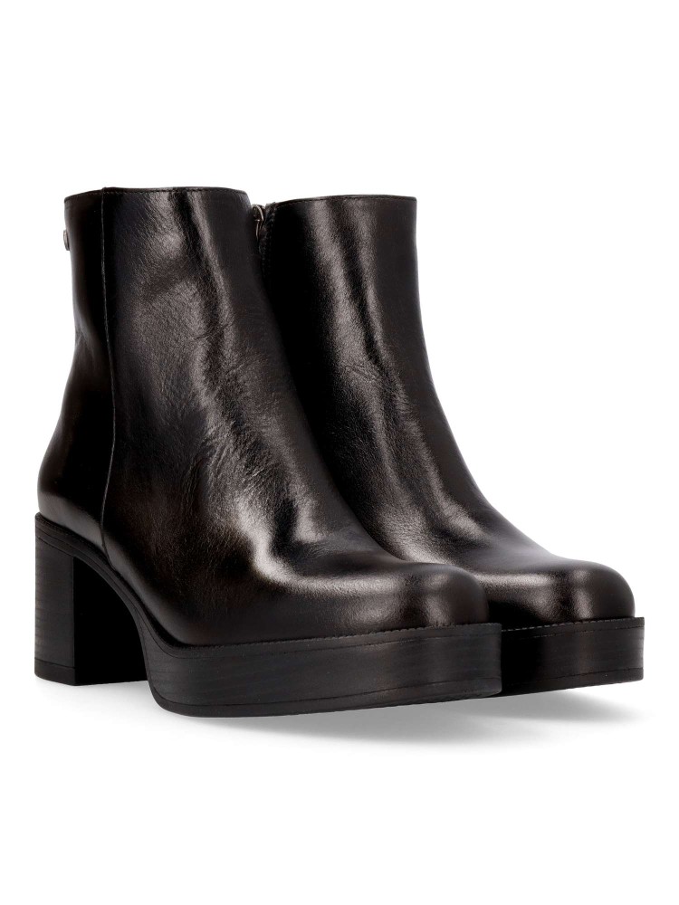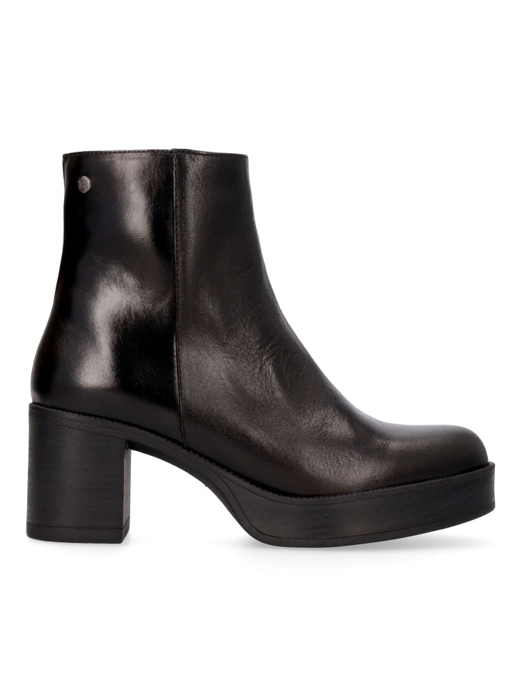 Botín de mujer con cierre de cremallera. Fabricado en piel con suela de goma. Plataforma y tacón de 6,5 cm. Eleva tus looks con un diseño versátil que suma elegancia y carácter a tus outfits.