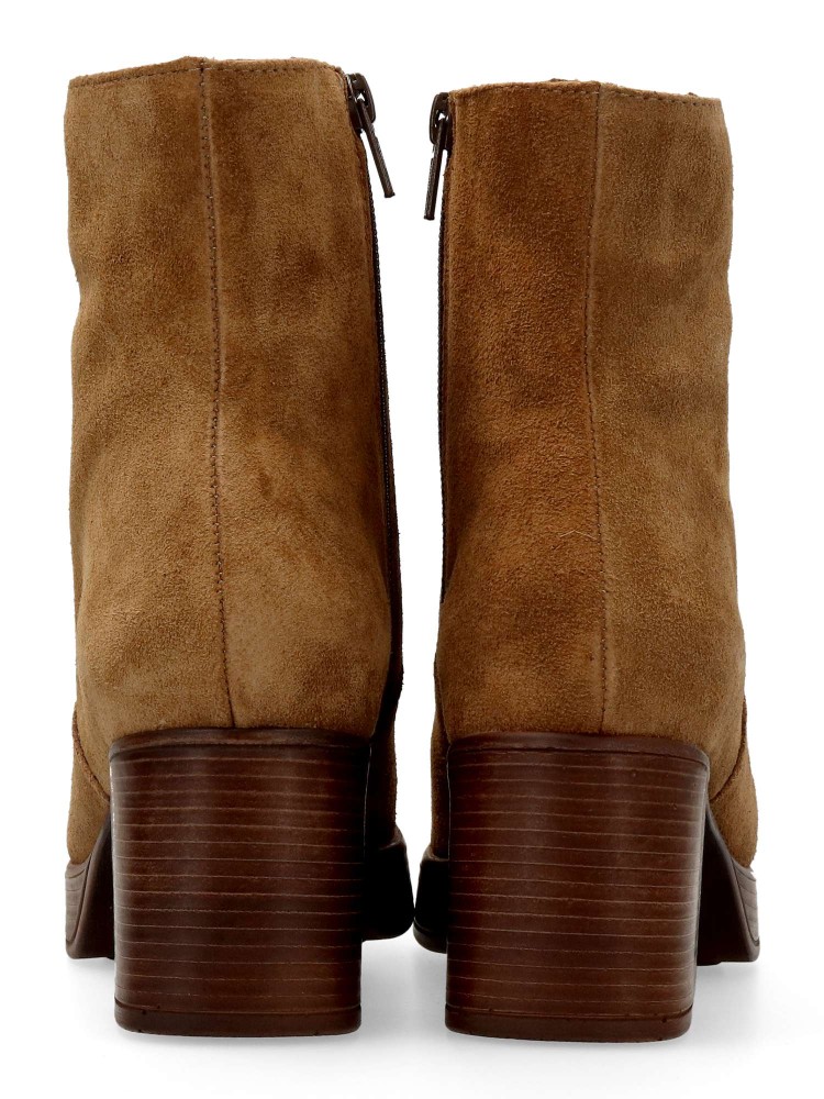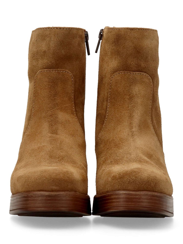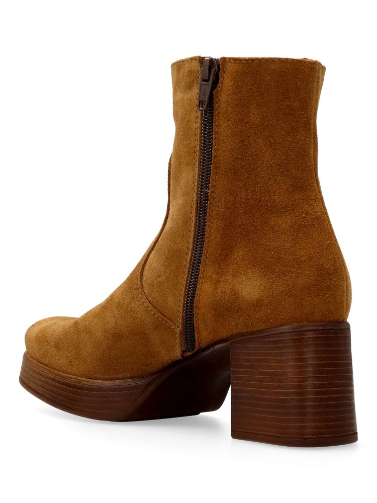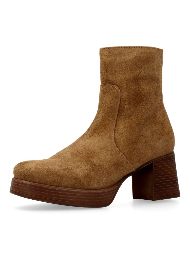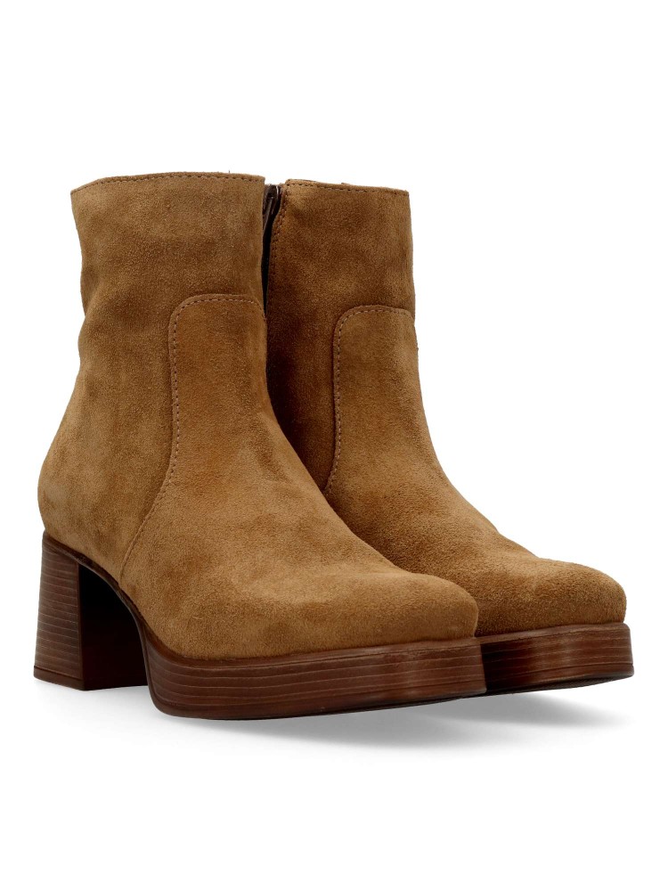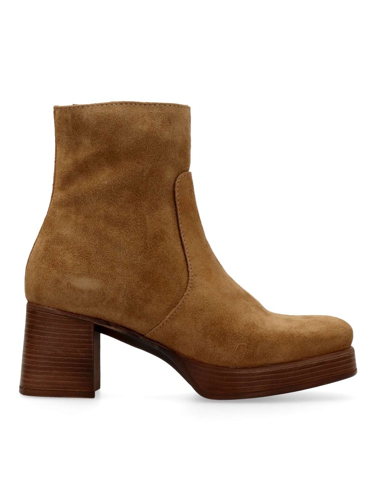 Botín de mujer fabricados en piel serraje color taupe. Cierre de cremallera lateral. Un diseño confeccionado con comodísimo tacón de 6 cm de altura y 2 cm de plataforma. Punta redonda. Plantilla de piel. Hecho en España