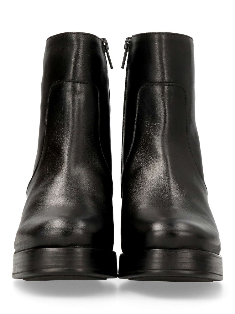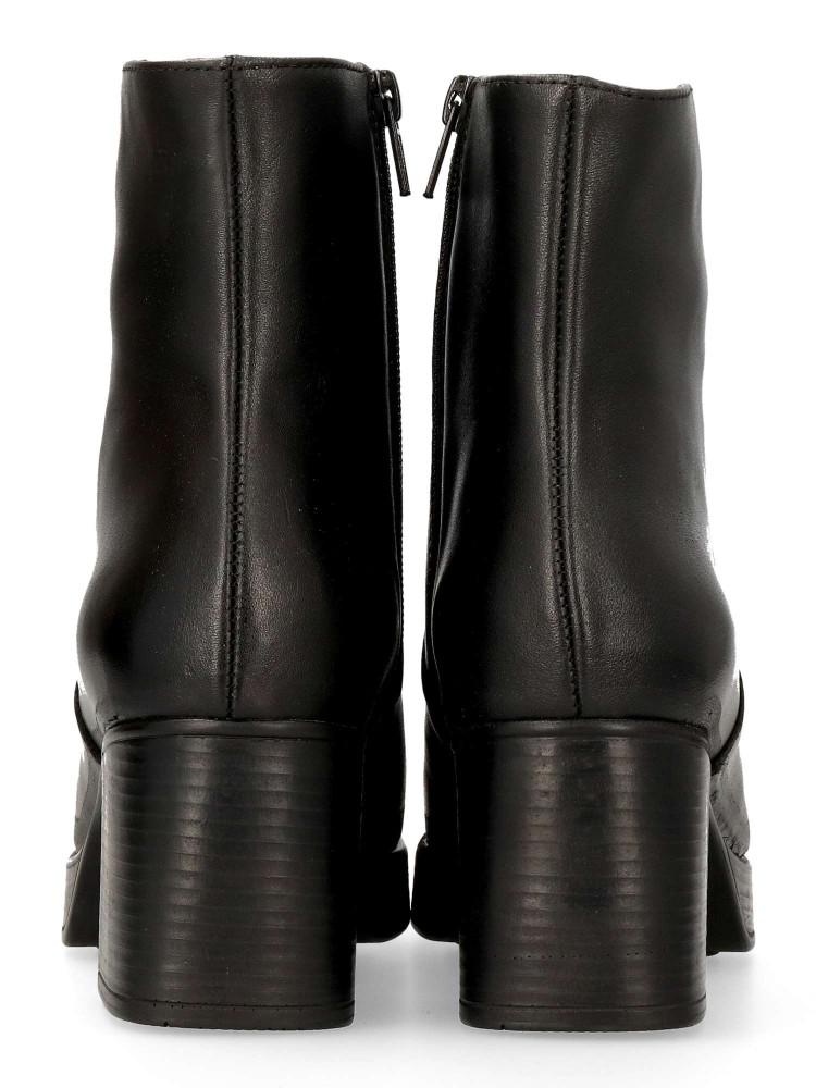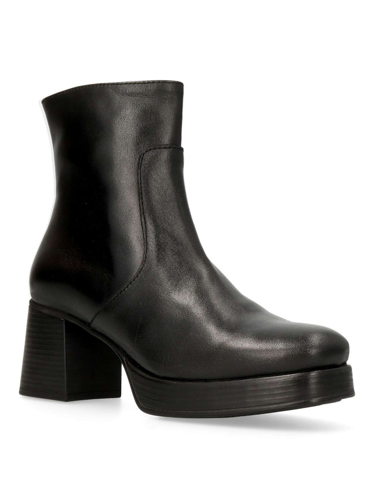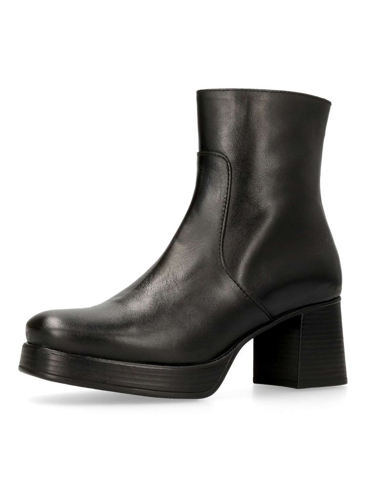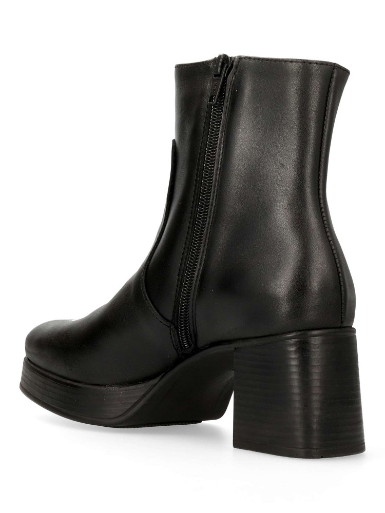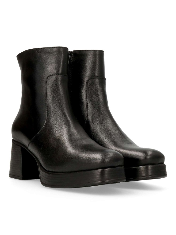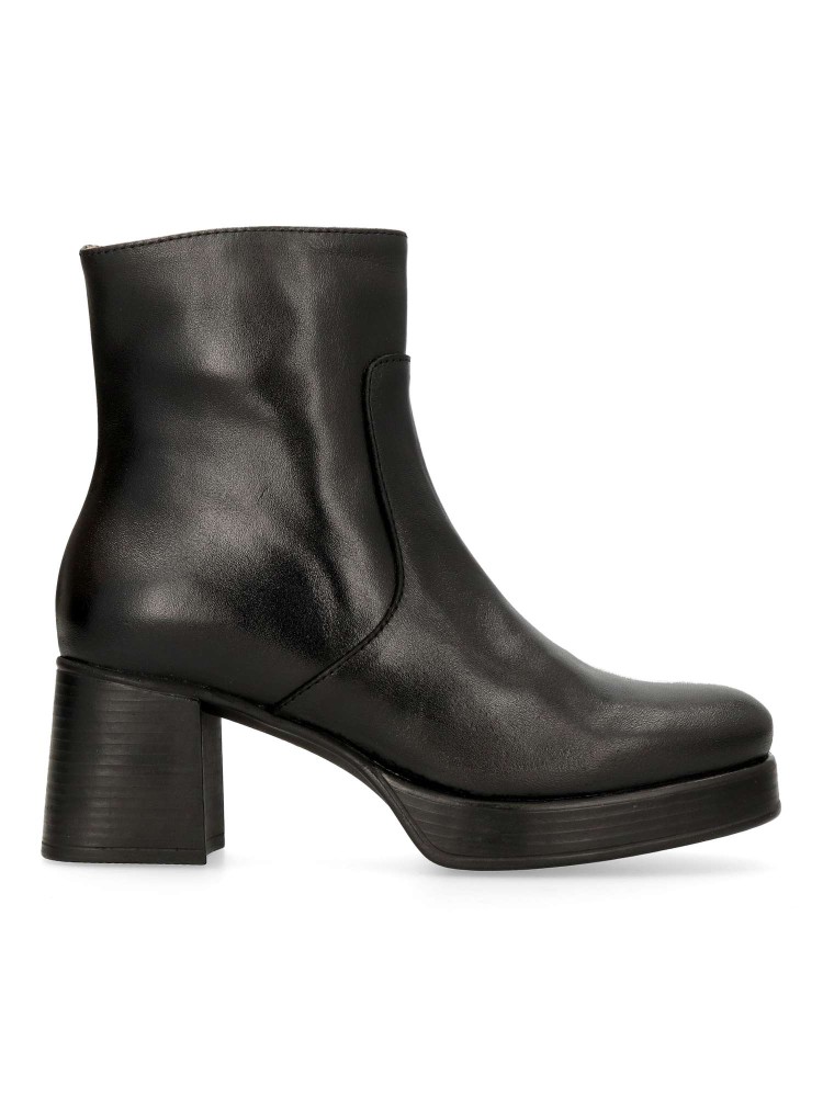 Botín de mujer fabricados en piel color negra. Cierre de cremallera lateral. Un diseño confeccionado con comodísimo tacón de 6 cm de altura y 2 cm de plataforma. Punta redonda. Plantilla de piel. Hecho en España