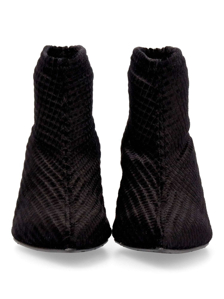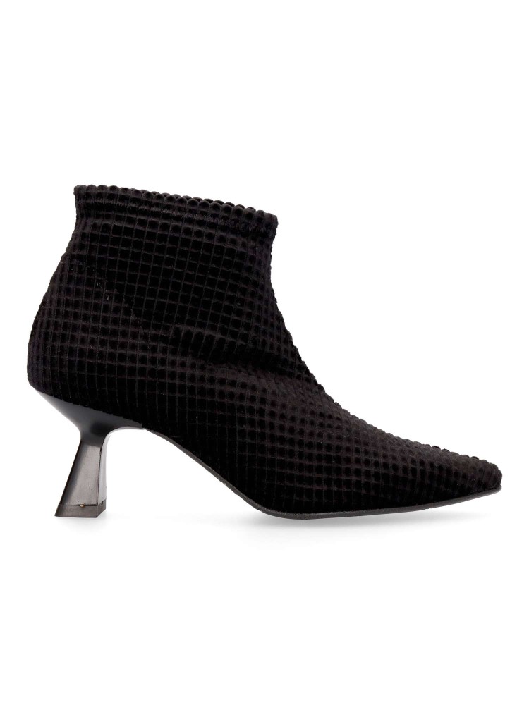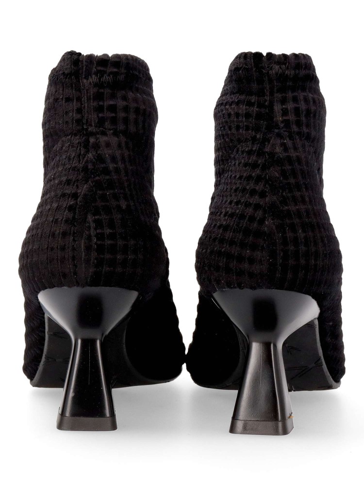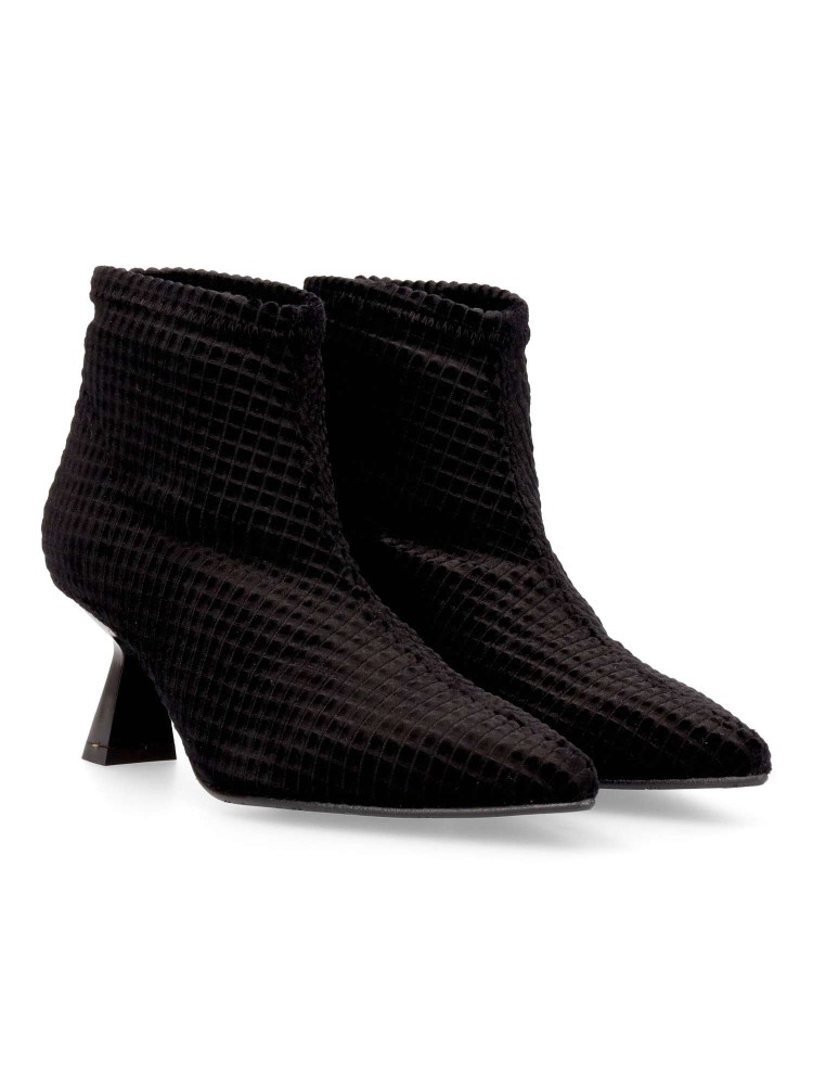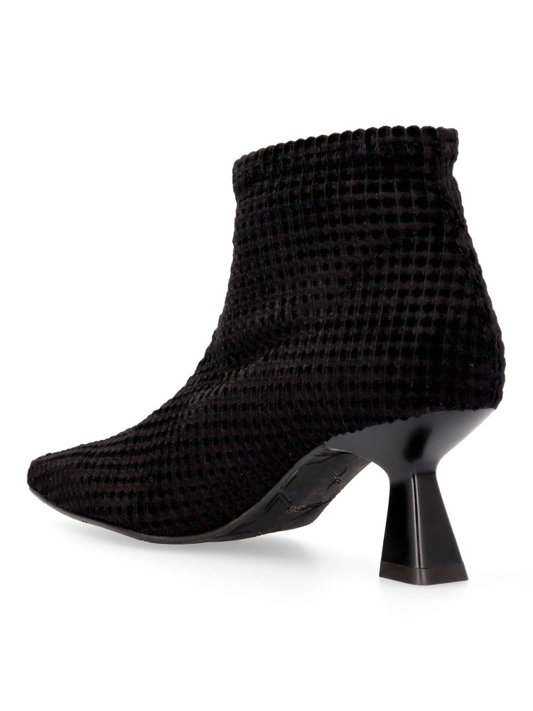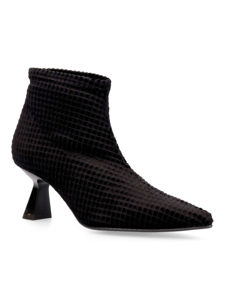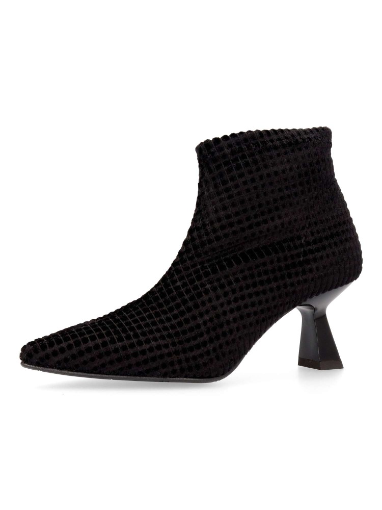 Botín de mujer cómodo. Fabricados en textil elástico suave. Tacón y puntera fina. Altura tacón 6 cm. Caña de 11 cm. Color negro. Diseño cómodo, elegante y versátil, fácil de combinar con tus looks de invierno.