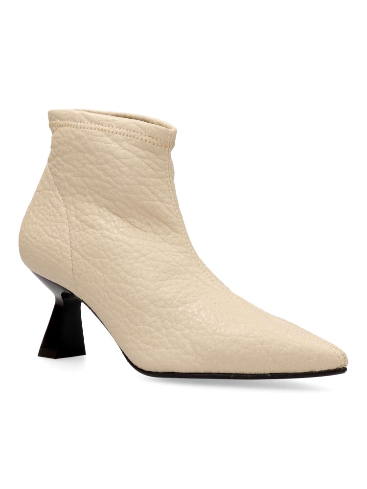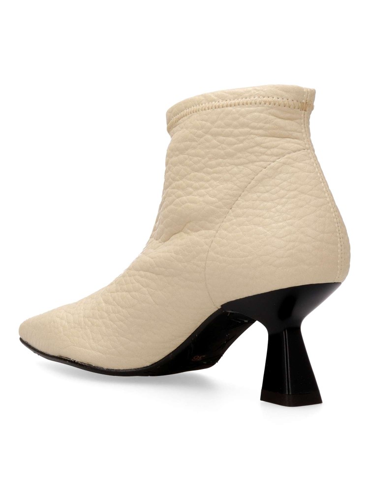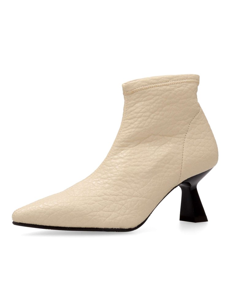 Botín de mujer cómodo. Fabricados en napa elástica sintética suave. Forro interior textil suave y cálido. Tacón y puntera fina. Altura tacón 6 cm. Caña de 11 cm. Color beige. Diseño cómodo, elegante y versátil, fácil de combinar con tus looks de invierno.