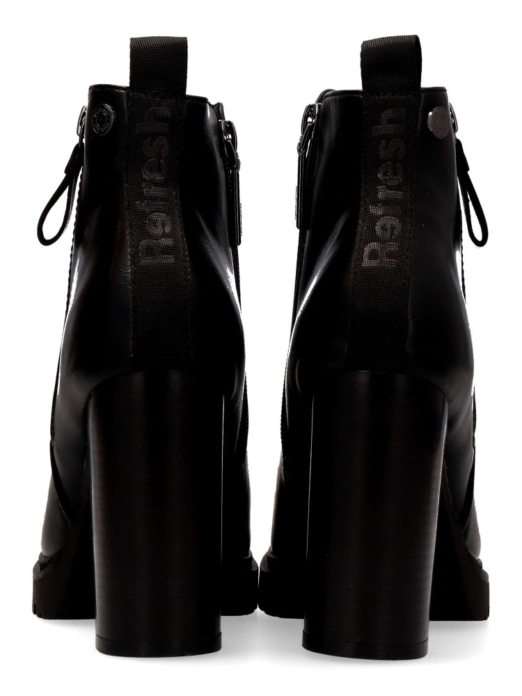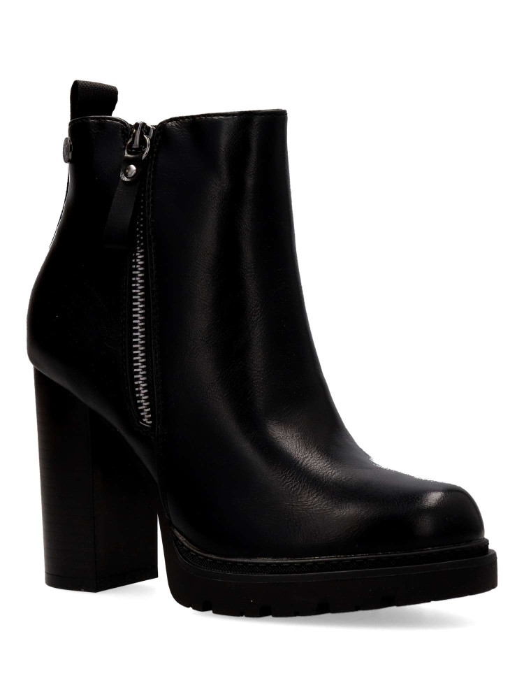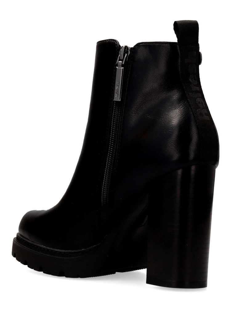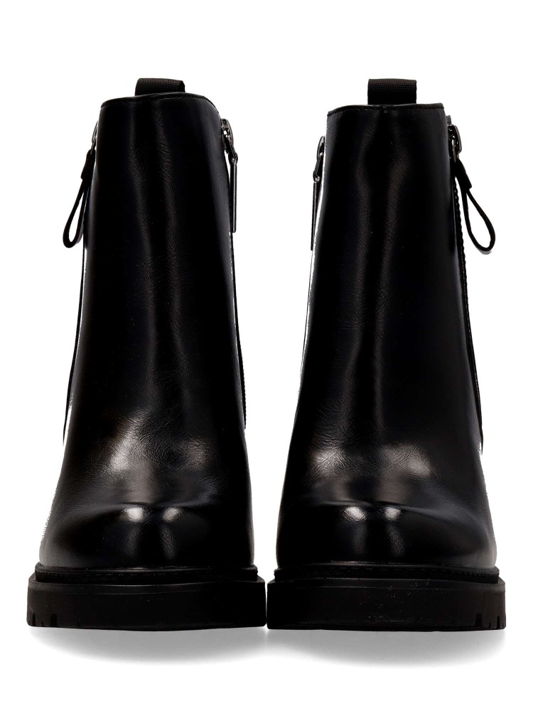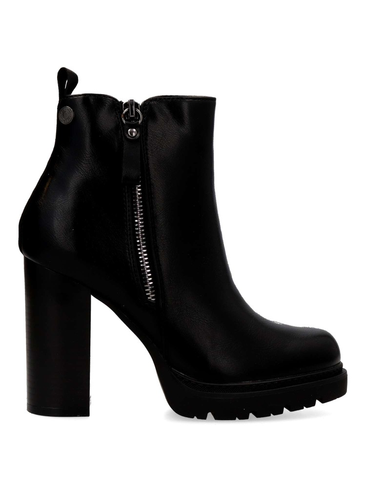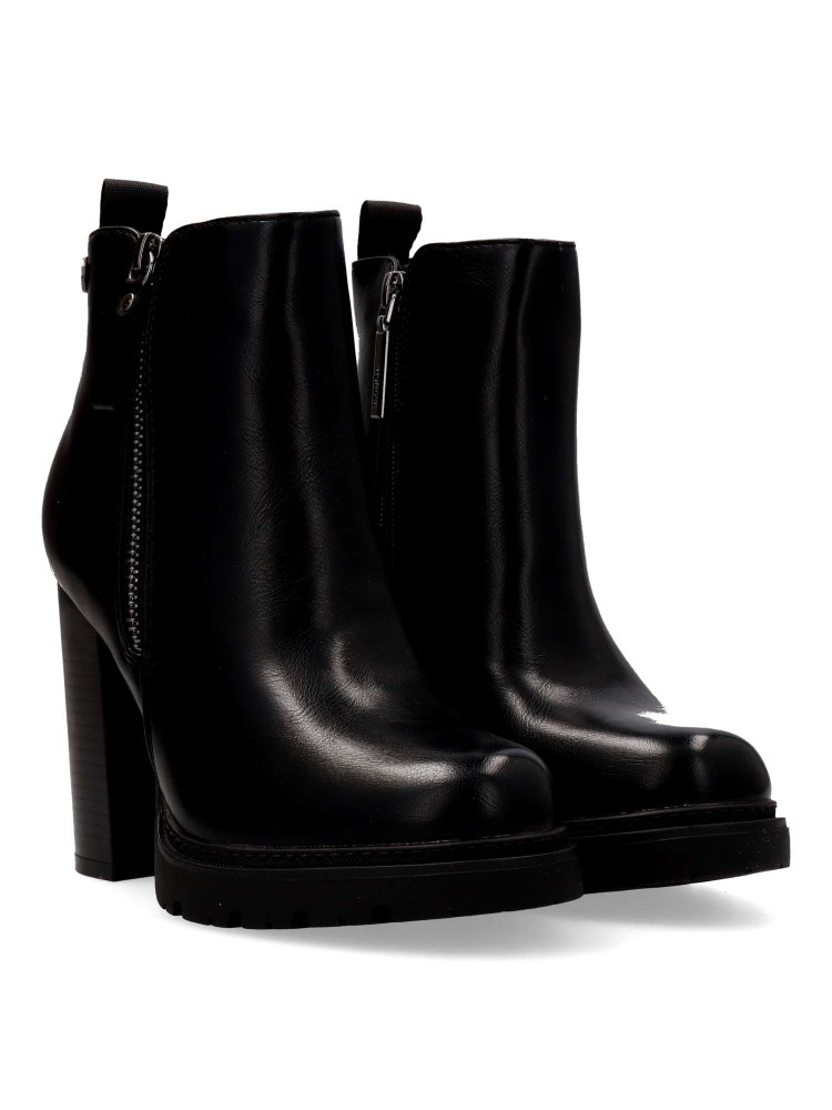Botín de mujer, fabricado en material que imita a la piel. Cremallera lateral decorativa. Suela de goma antideslizante. Tacón de 9 cm. y caña de 11 cm. Un Botín versátil para completar tus looks esta temporada. Certificado vegano.