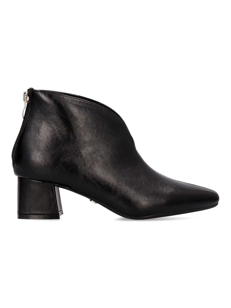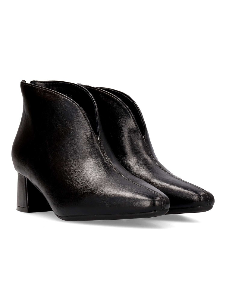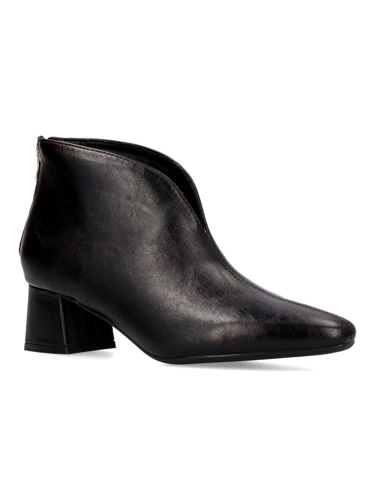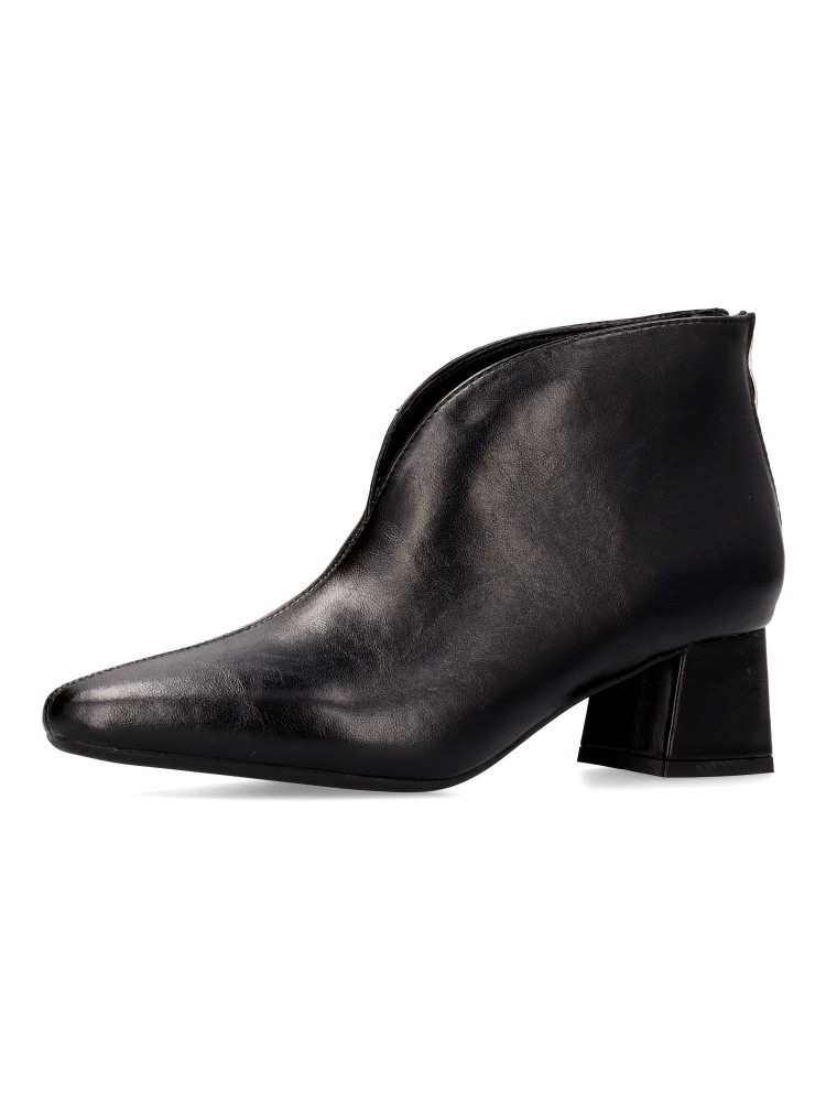 Botines de mujer con abertura delantera. Fabricados en piel sintética suave. Tacon de 4,5cm. Caña de 10cm. Diseñados para la mujer moderna que busca destacar con cada paso, estos botines se convertirán en tu nuevo imprescindible para cualquier ocasión.