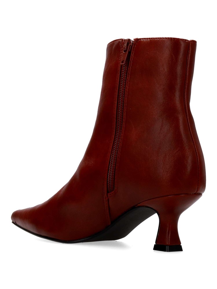 Botines de mujer con cierre de cremallera lateral. Modelo con punta fina y tacón medio de 5 cm. Caña de 15 cm. Fabricado en piel sintética suave. Planta acolchada. Diseño clásico y versátil, que será muy fácil de combinar con tus outfits de invierno.