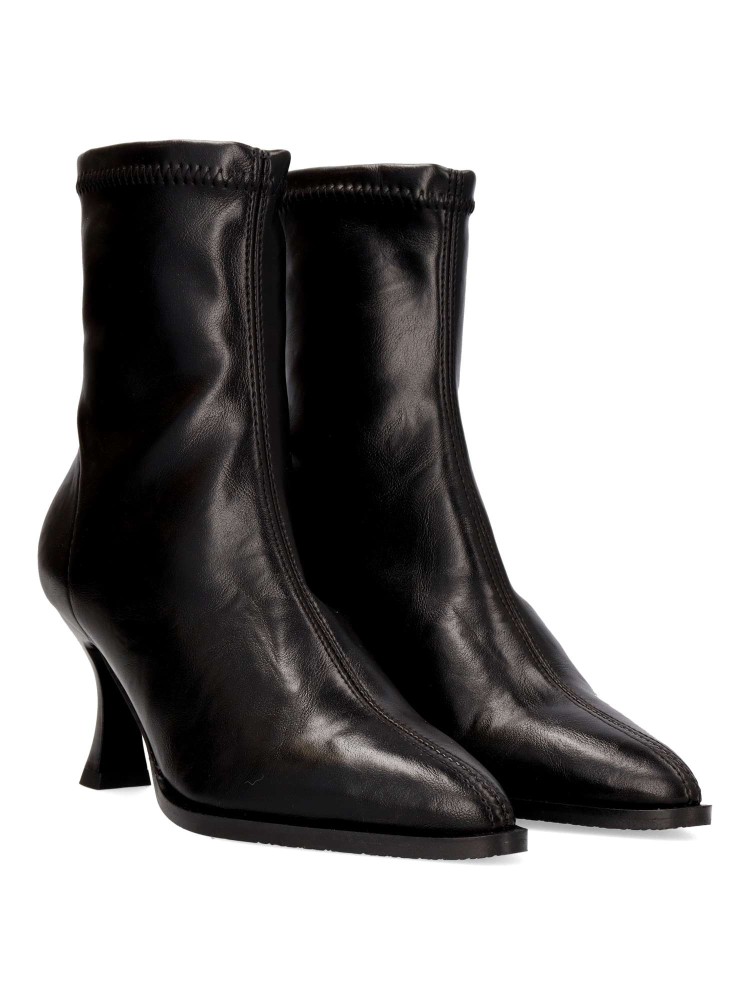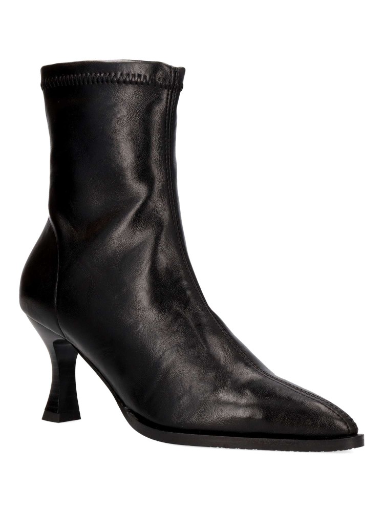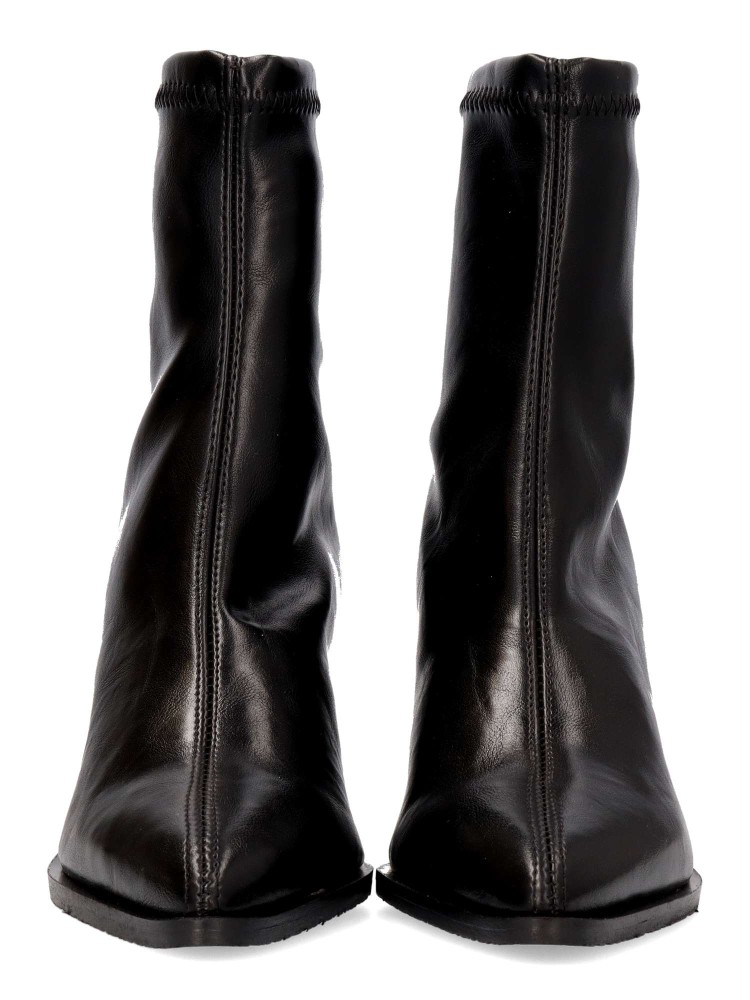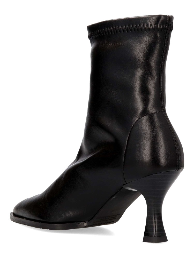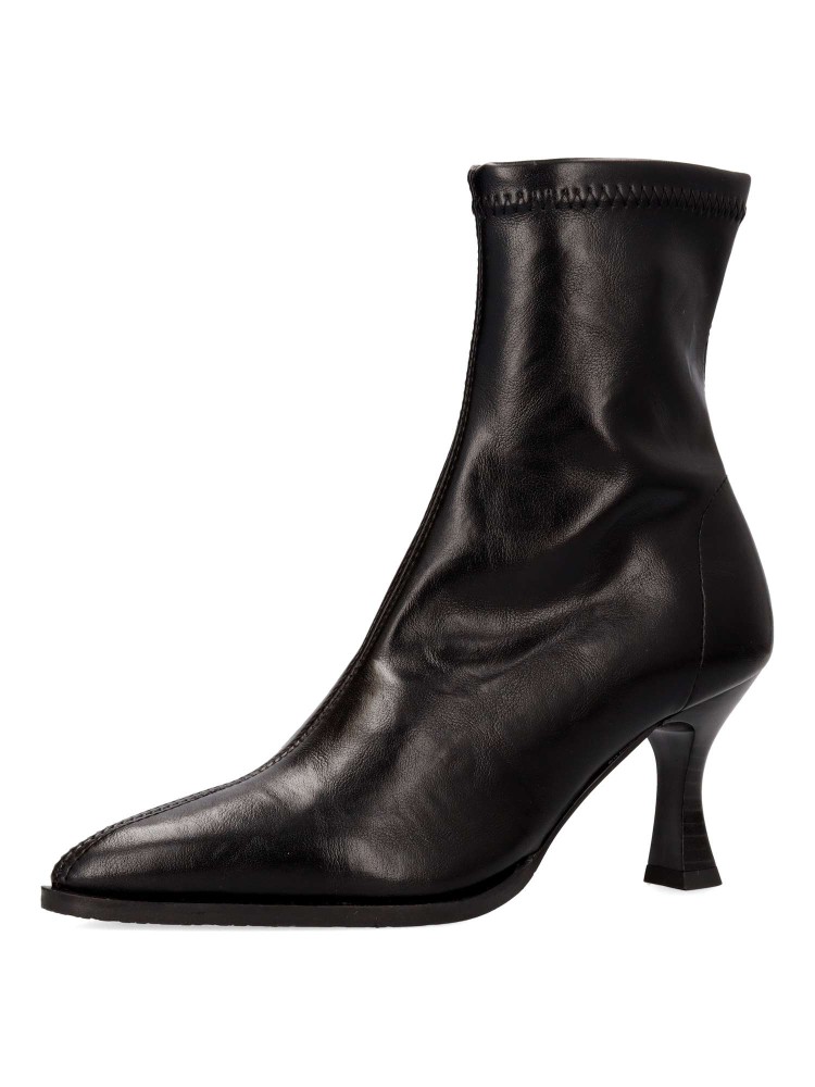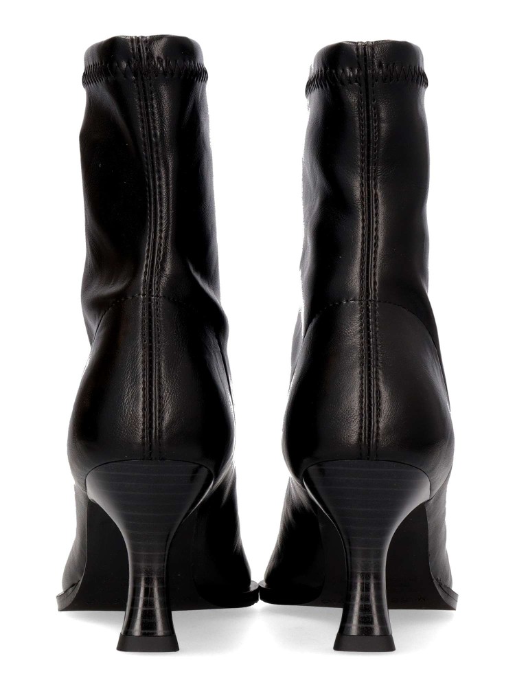 Botines de mujer fabricados en tejido elástico. Color negro. Tacón trompeta de 7 cm. Caña de 18 cm. Tecnología EcoDry y Sanitex, libre de sudoración, ofreciendo frescura y bienestar durante todo el día. Ideal para quienes buscan elegancia y funcionalidad.