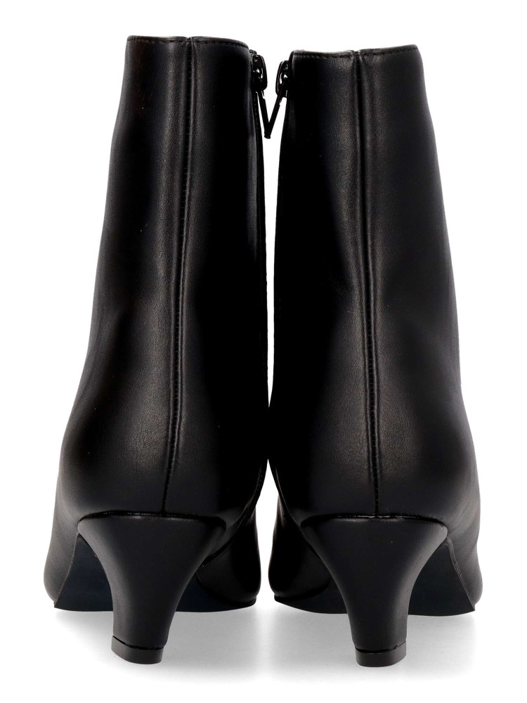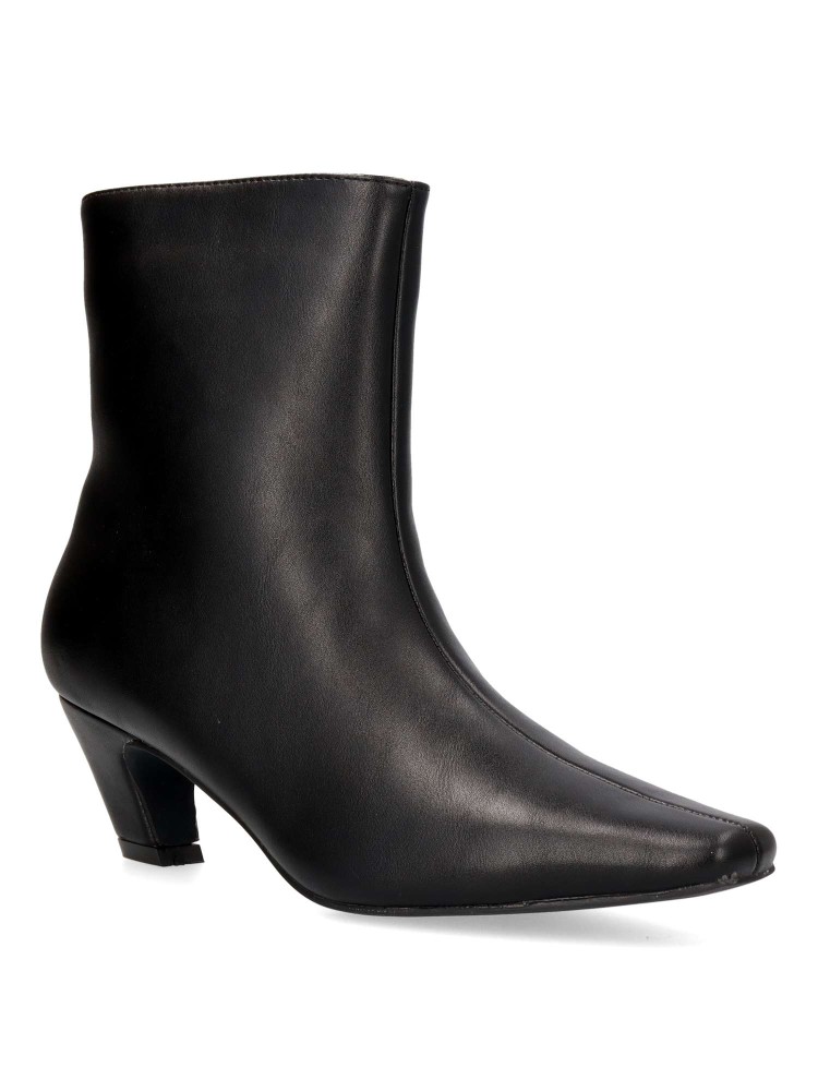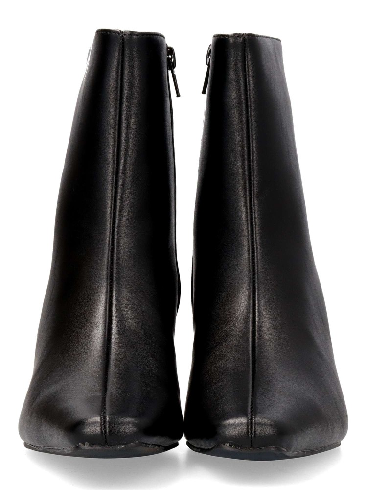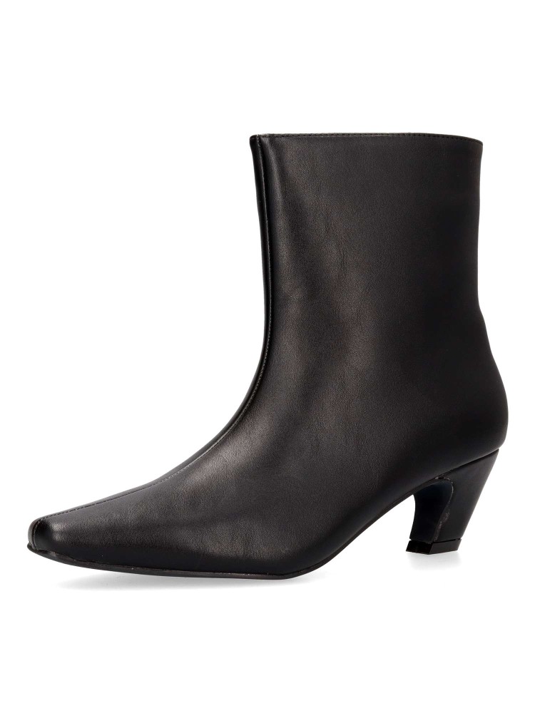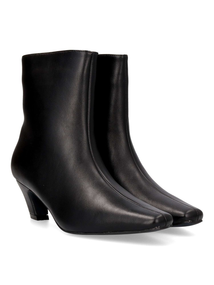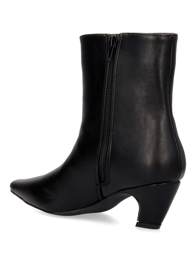 Botín de mujer con cierre de cremallera. Fabricados en piel sintética color negra. Tacón de 5,5 cm. Caña de 16 cm. Diseño clásico y versátil, que será muy fácil de combinar con tus outfits de invierno.