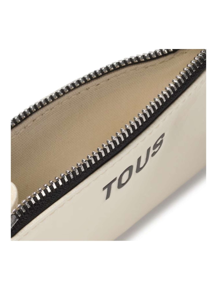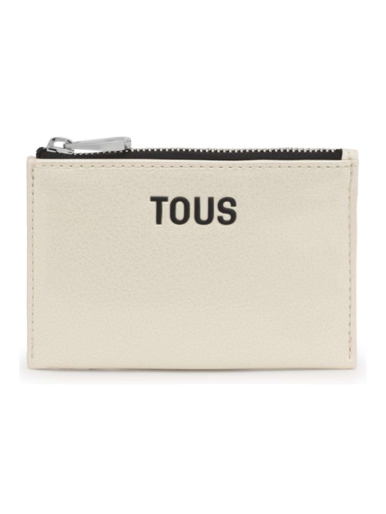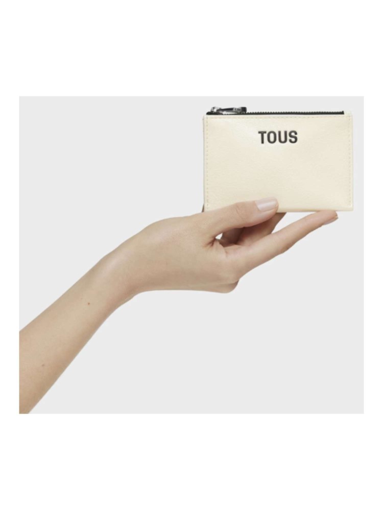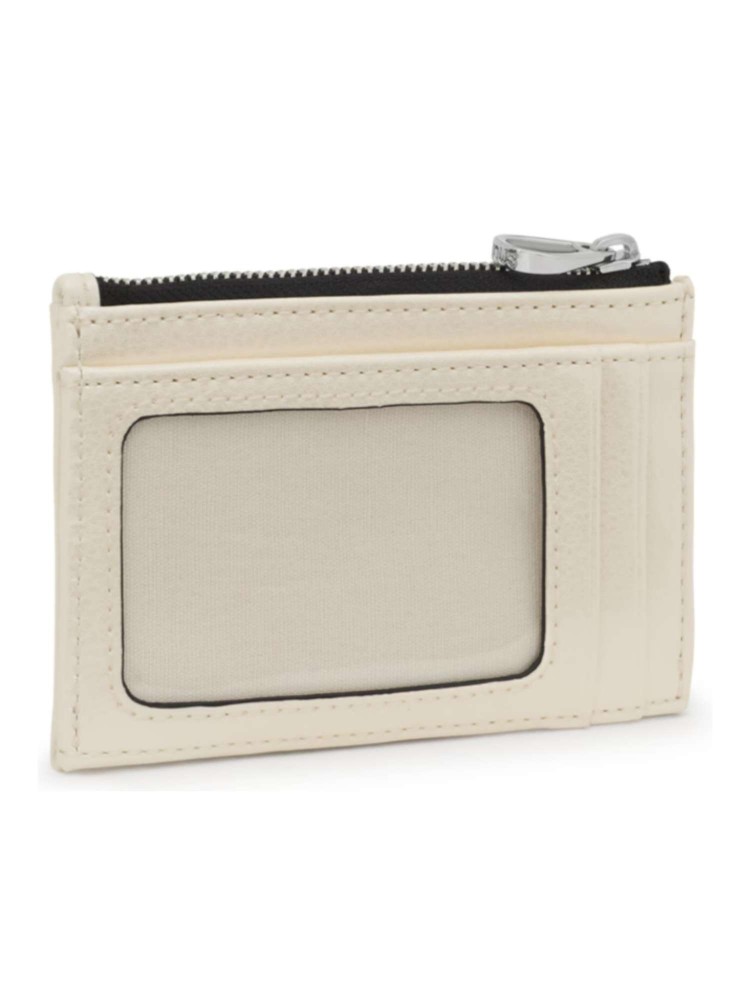 Monedero tarjetero de poliuretano en color beige. Compartimento especial para monedas con cierre de cremallera. En la parte trasera cuenta con tres ranuras para tarjetas, una de ellas transparente. Medidas (alto x ancho x fondo): 8,5 x 11,5 x 1,8 cm.