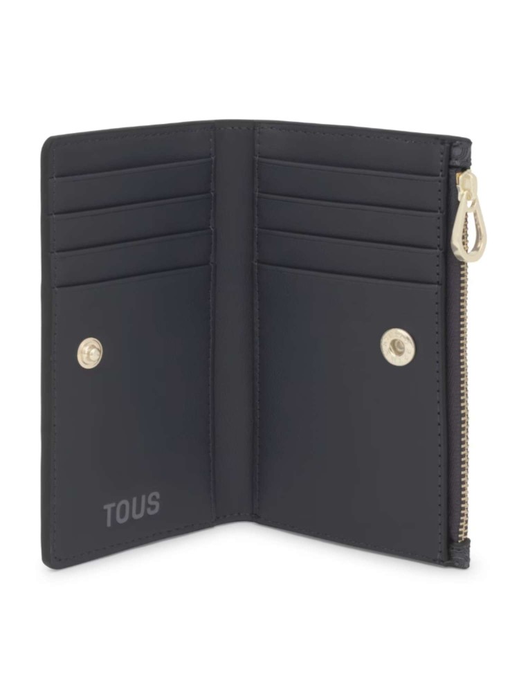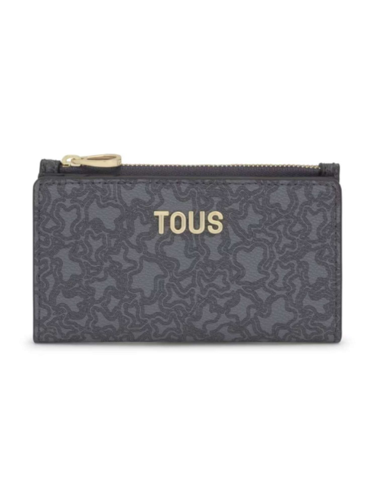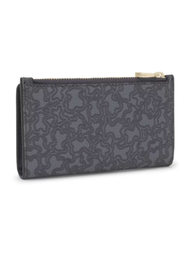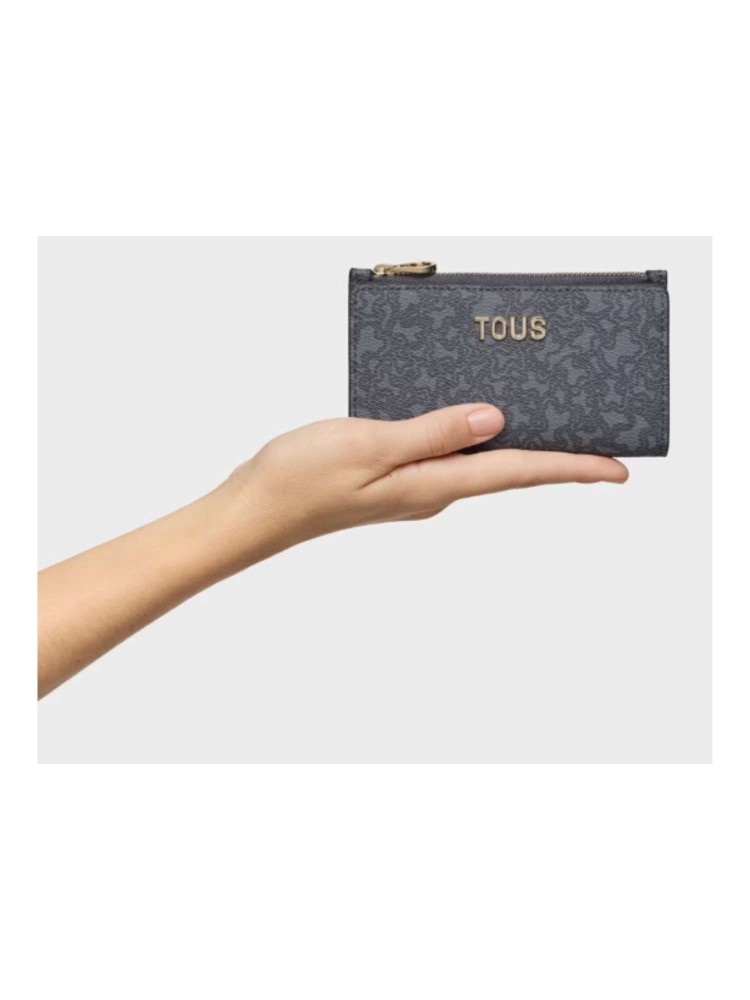 Cartera Kaos Mini Lines de lona en color gris oscuro. Cierre con botón a presión. Contiene seis ranuras para tarjetas, un compartimento para billetes y un bolsillo con cremallera para monedas. Medidas (alto x ancho x fondo): 8 x 14,2 x 1,5 cm.