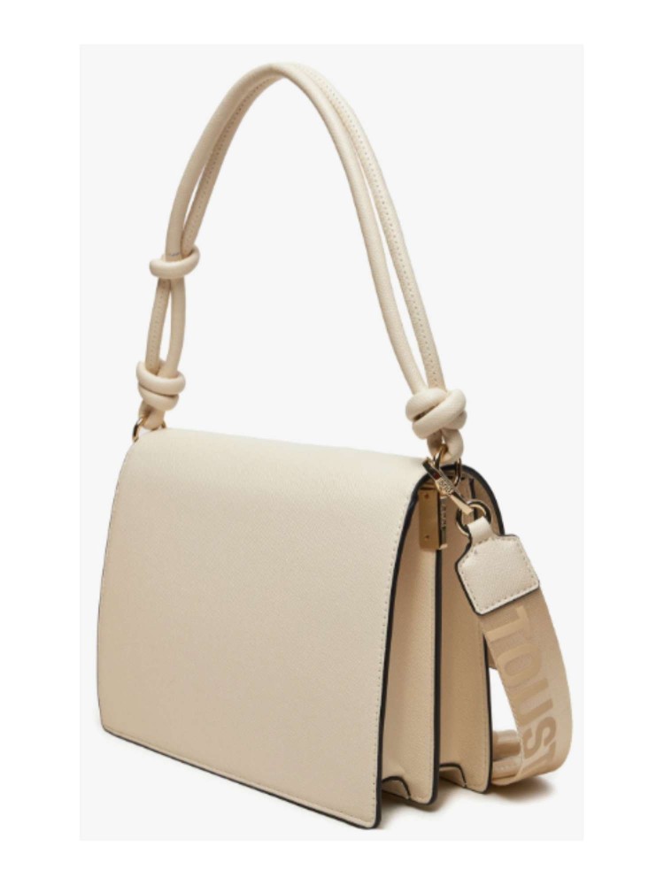 Bolso bandolera mediana. Incorpora una solapa y cierre con dos botones magnéticos. Cuenta con dos compartimentos separados. Asa de hombro fija y asa bandolera ajustable y extraíble. Medidas (alto x ancho x fondo): 18 x 25 x 12,5 cm.