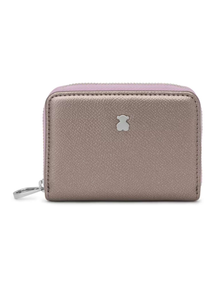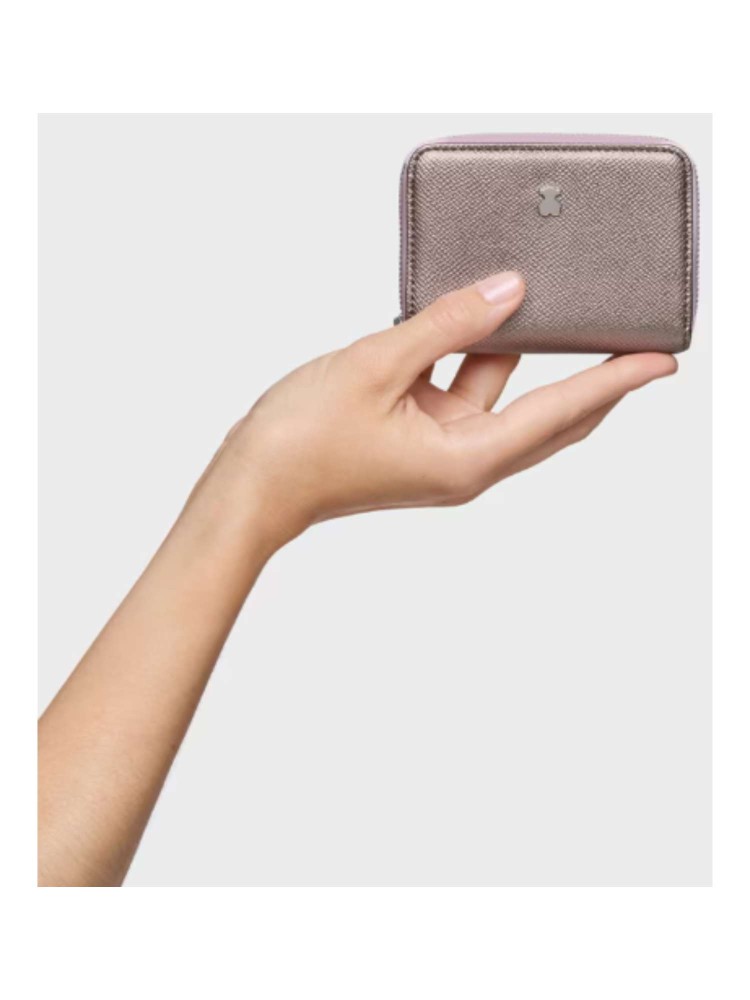 Monedero mediano TOUS New Dubai de poliuretano con efecto saffiano en color plata. Cierre con cremallera y dos compartimentos para monedas. Medidas: 11 x 8 x 3 cm.