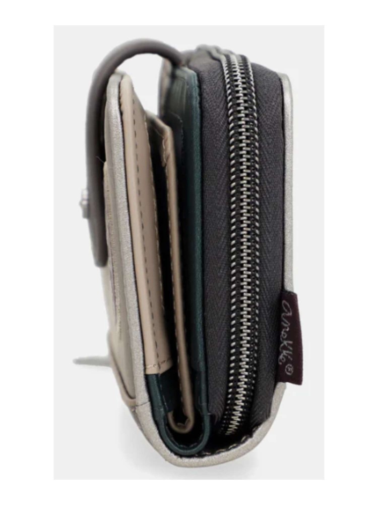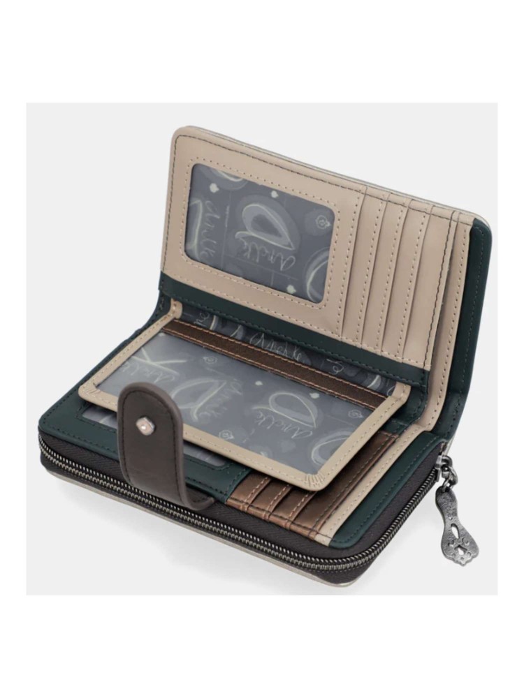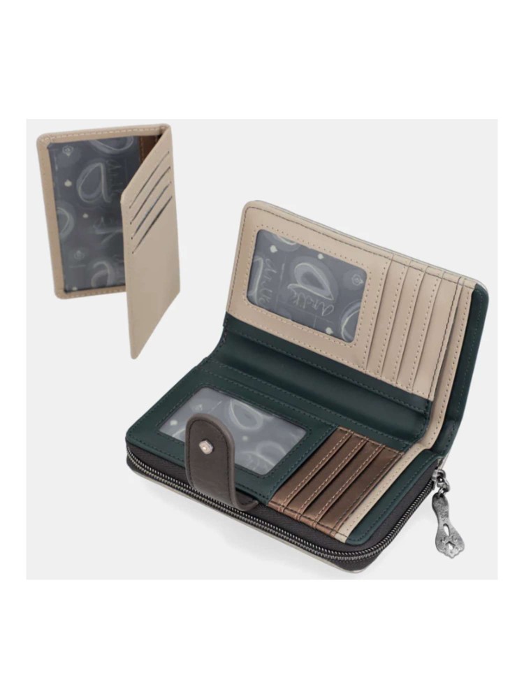 Billetero mediano de mujer, con cierre de cremallera. Varios bolsillos en el interior. Medidas (Largo x Alto x Ancho): 15 cm/10 cm/3 cm.