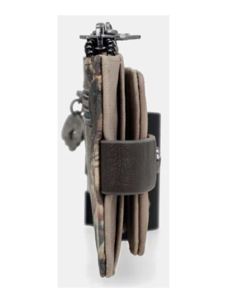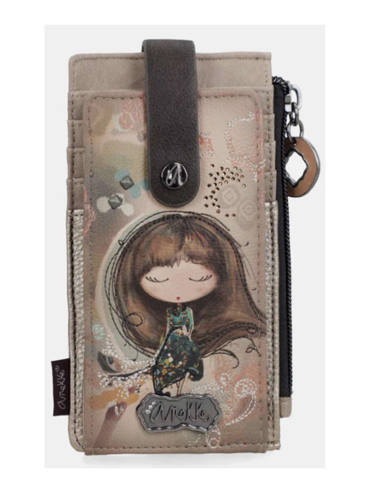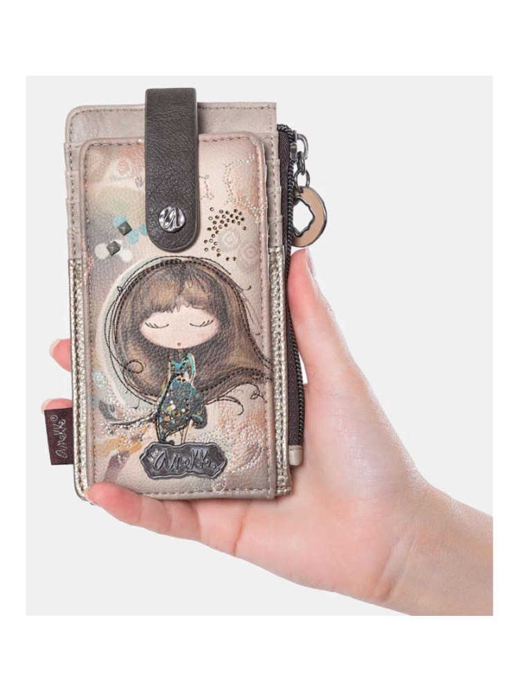Tarjetero de mujer con solapa. Modelo multitarjeta con un bolsillo trasero. Medidas (Largo x Alto x Ancho): 16 cm/9 cm/2 cm.