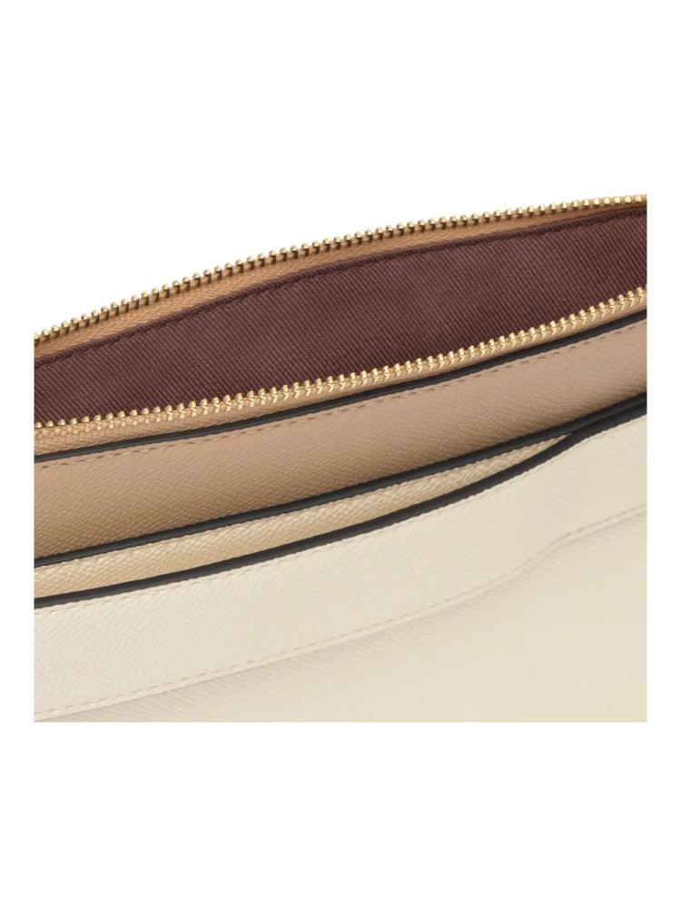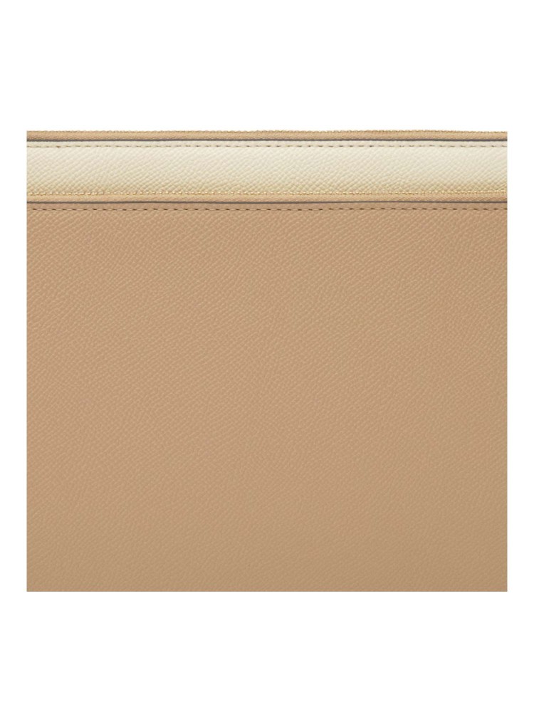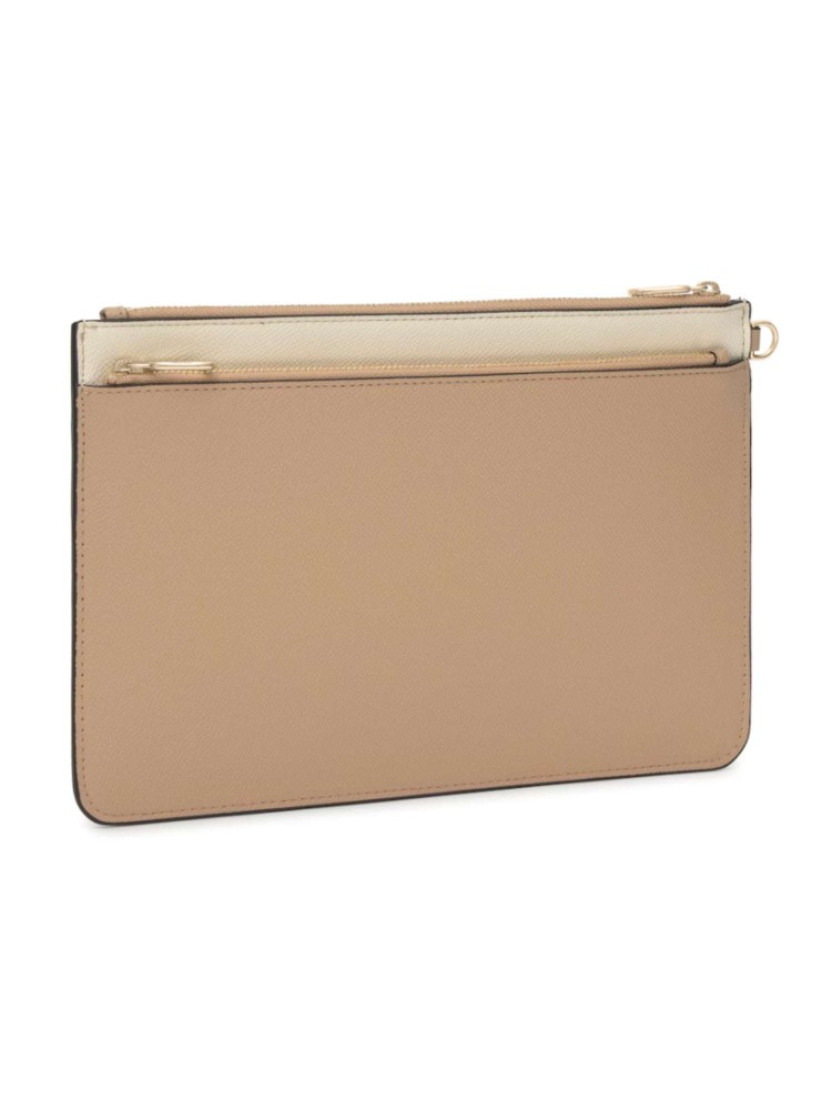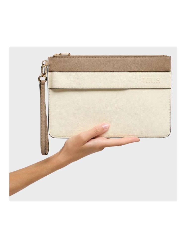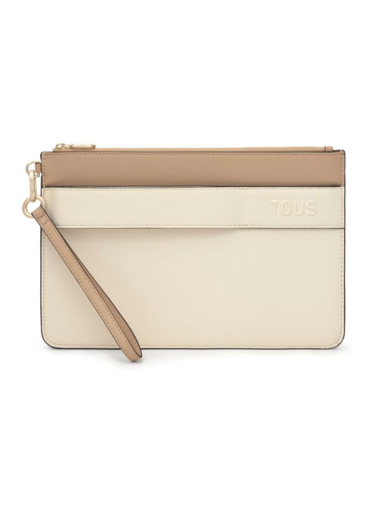 Clutch TOUS Audree Saffiano de poliuretano en color beige y arena. Cierre de cremallera. Dos compartimentos. Asa de mano desmontable. Medidas (alto x ancho x fondo): 17,5 x 26 x 3 cm.