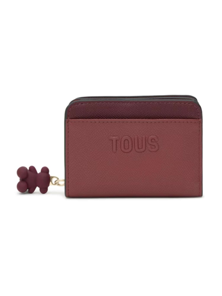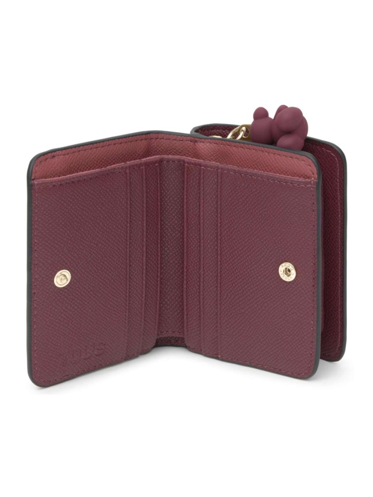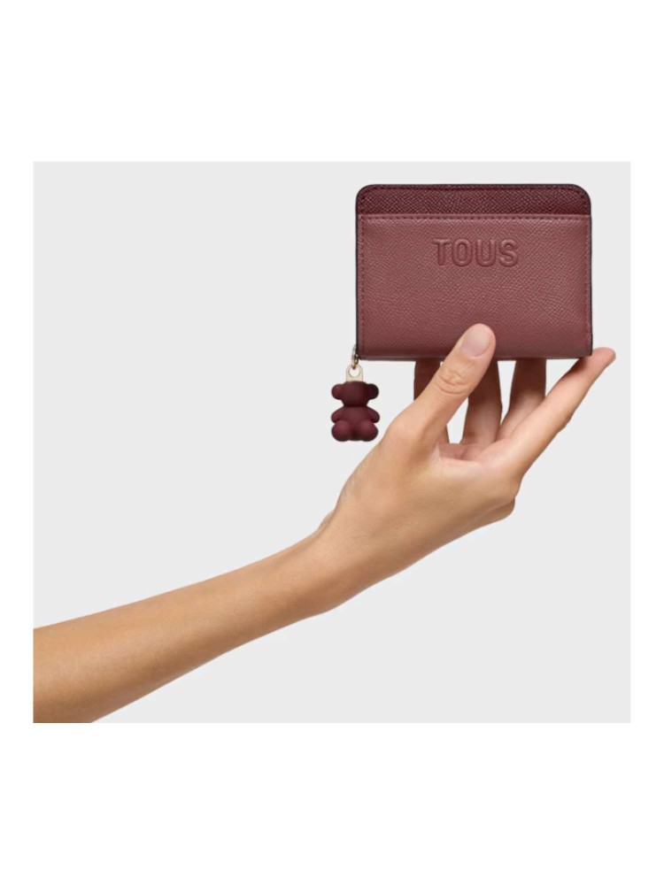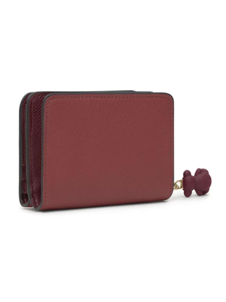 Cartera Doble Audree Saffiano de poliuretano en color burdeos. Cierre con botón a presión y cremallera. Dos compartimentos principales: uno con cremallera y otro para tarjetas. Medidas: 8,5 x 11 x 5,5 cm.