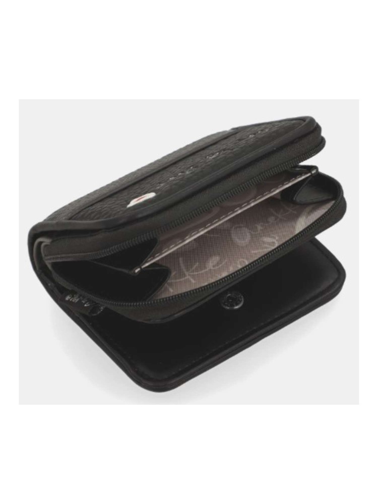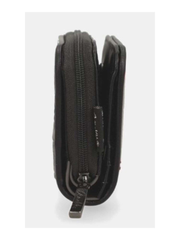 Billetero duro pequeño, con cierre de cremallera. Multi bolsillos en el interior. Medidas (Largo x Alto x Ancho): 10 cm / 9 cm / 3 cm Composición exterior: 100% PU. Peso: 100 g.