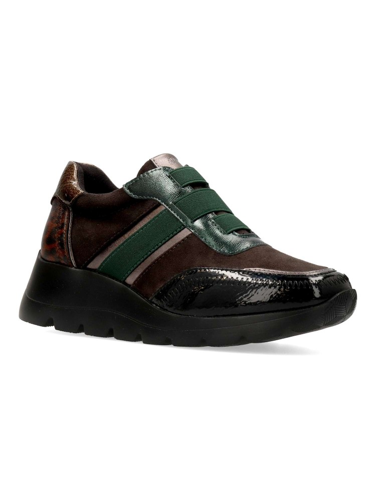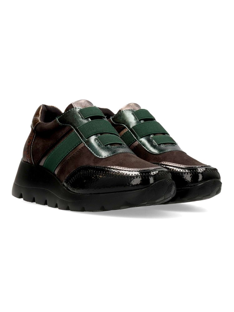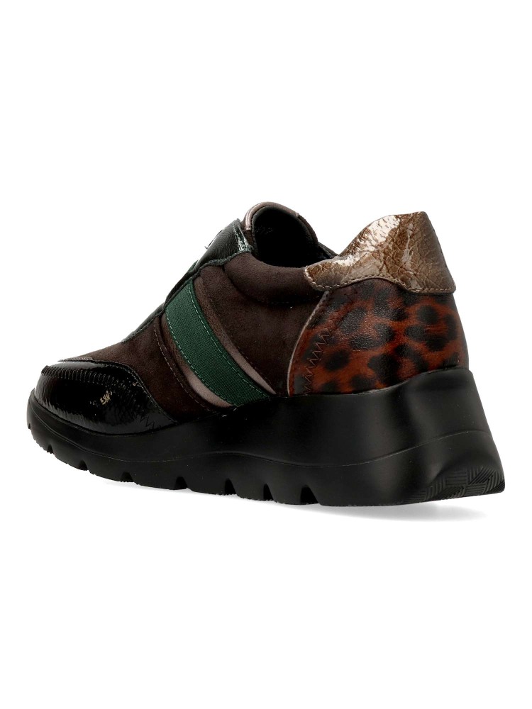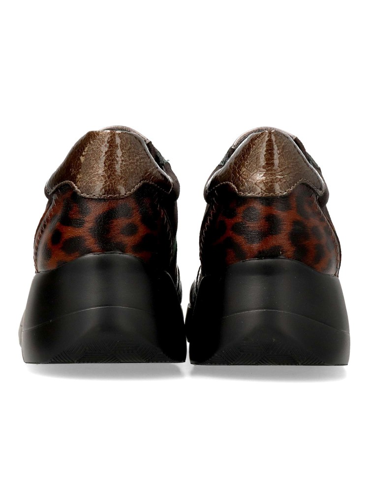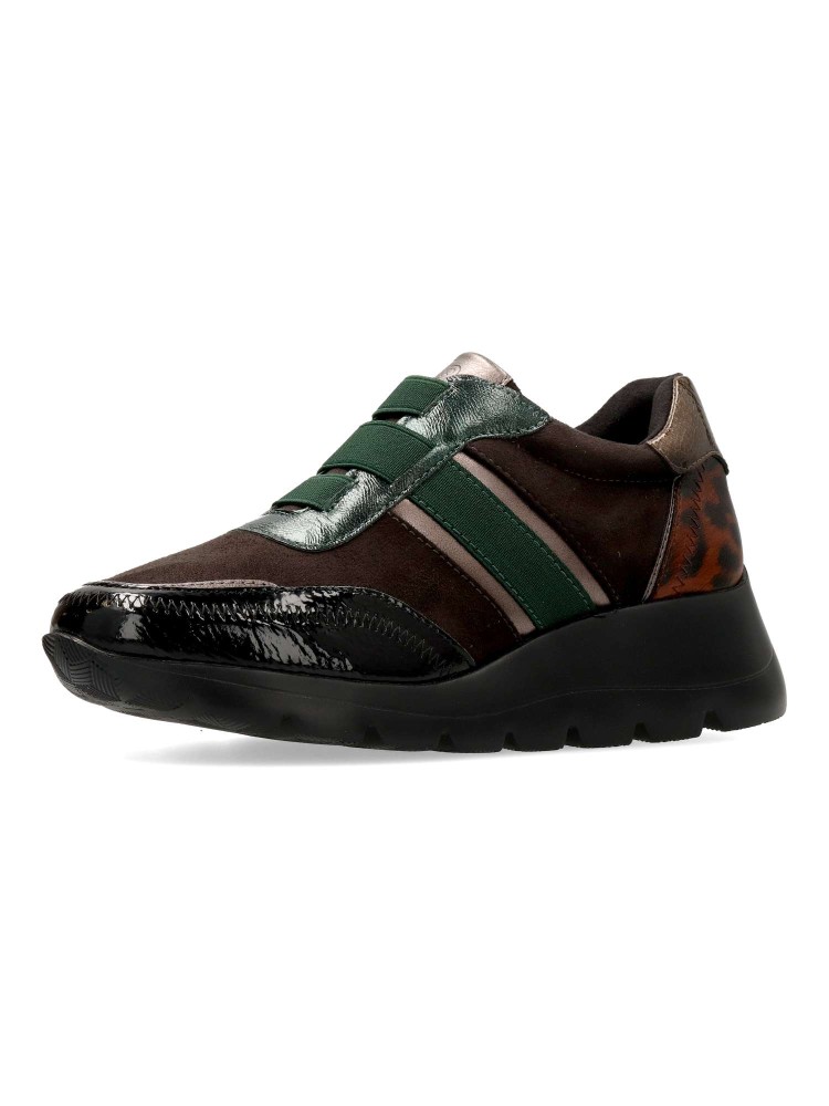 Zapato de mujer con cordón elástico. Fabricado en material sintético con suela de goma. Modelo que ofrece comodidad, ligereza y flexibilidad. Plantilla acolchada y extraíble Memory Sponge. Detalle estampado leopardo. Amarpies, confort a lo grande.