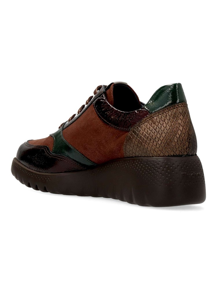 Zapatos de mujer, estilo casual. Fabricados en piel, con suela de goma EVA ligera y flexible. Plantilla acolchada y extraíble. Cierre de cordones. Color cafe. Live en un básico imprescindible en tu armario ya que se adapta a varios estilos y ocasiones.