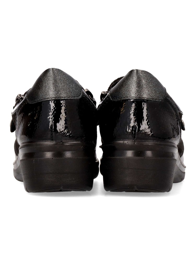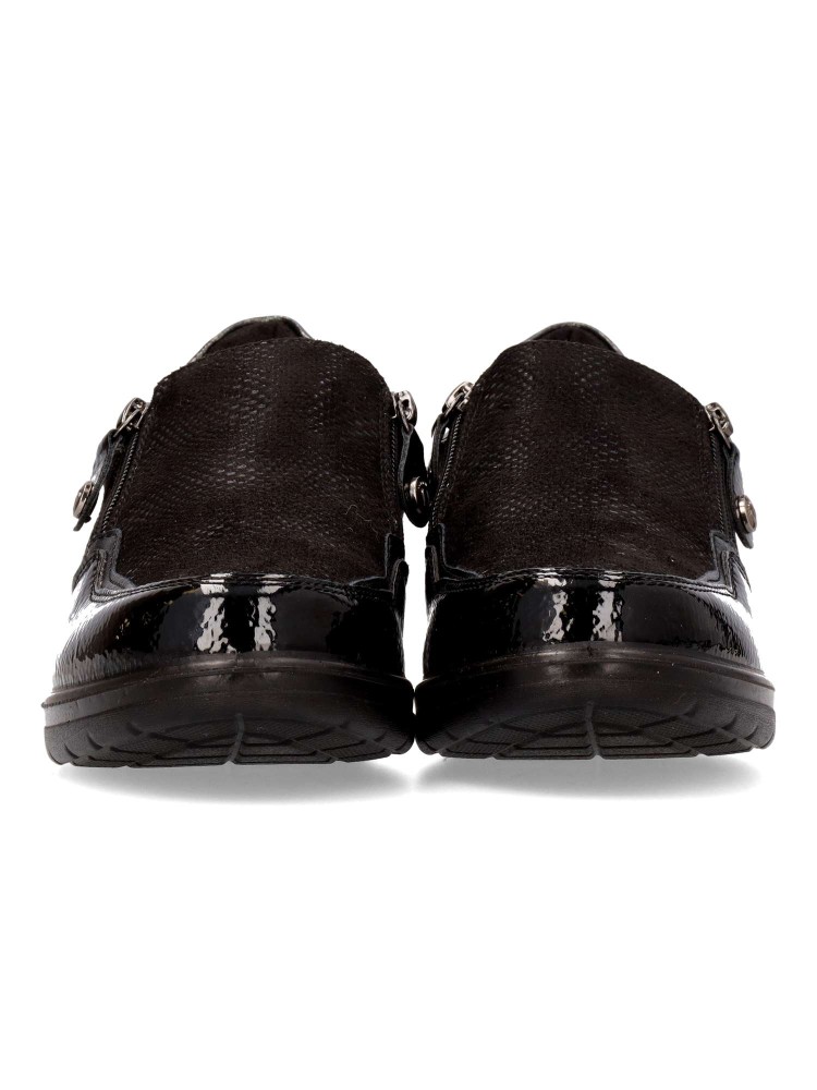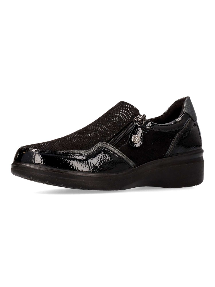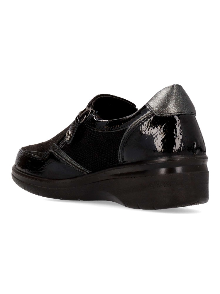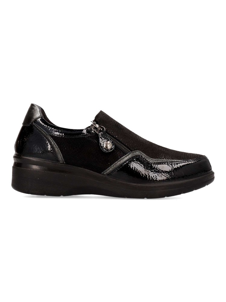 Zapato cómodo de mujer, con cierre de cremallera lateral. Fabricado en piel sintética suave, con suela de goma ligera y flexible. Plantilla acolchada y extraíble. Color negro. Amarpies, diseño elegante y versátil, para ofrecer el máximo confort.