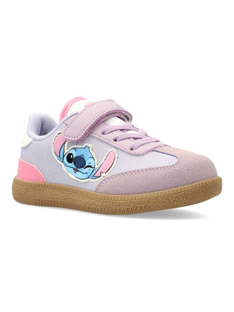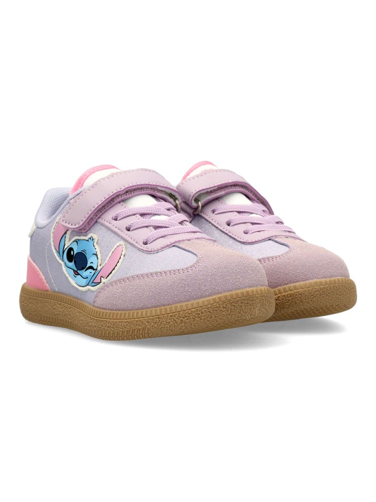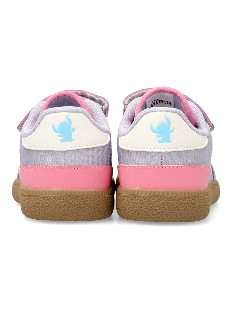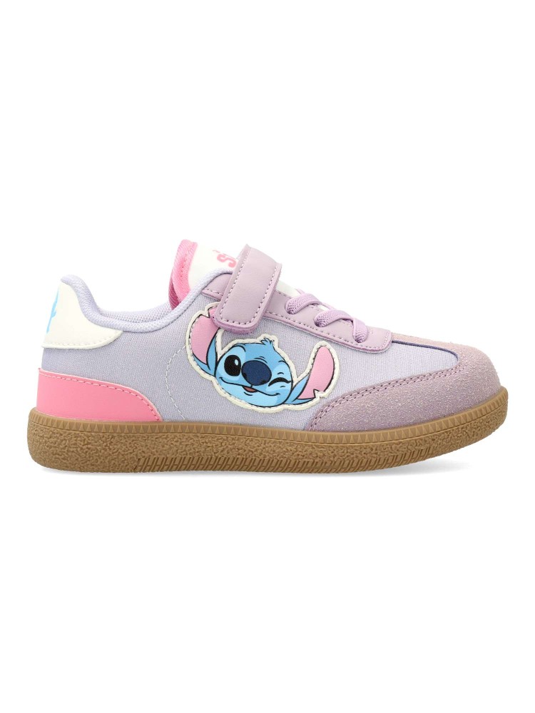 Zapatilla sport de niña, estilo casual. Cierre adherente y cordón elástico. Sneakers fabricado en piel sintética y textil, con suela de goma. Plantilla acolchada y extraíble. Color lila-rosa. Diseño cómodo y divertido, perfectas para los fans de Stitch.