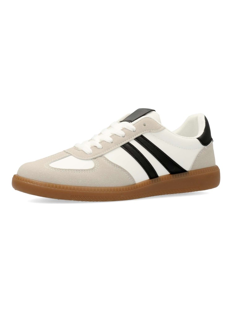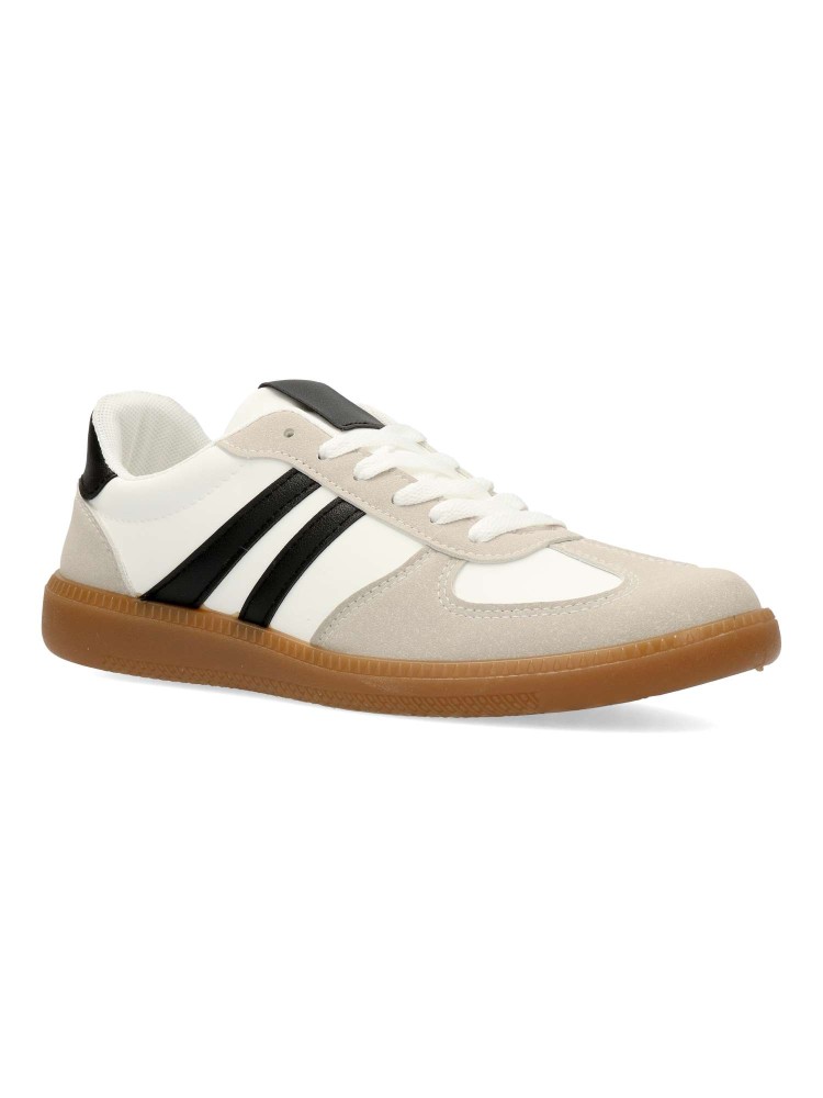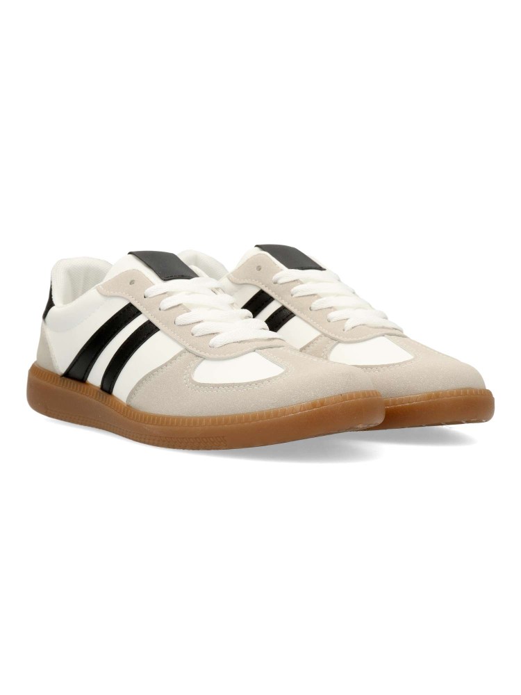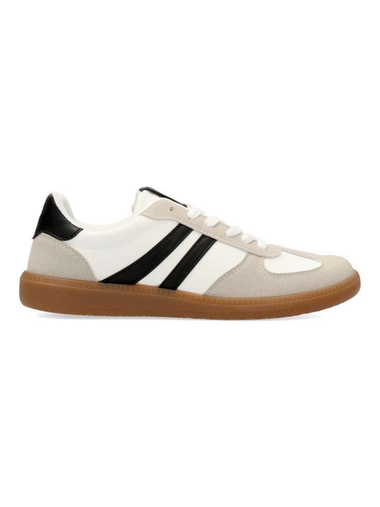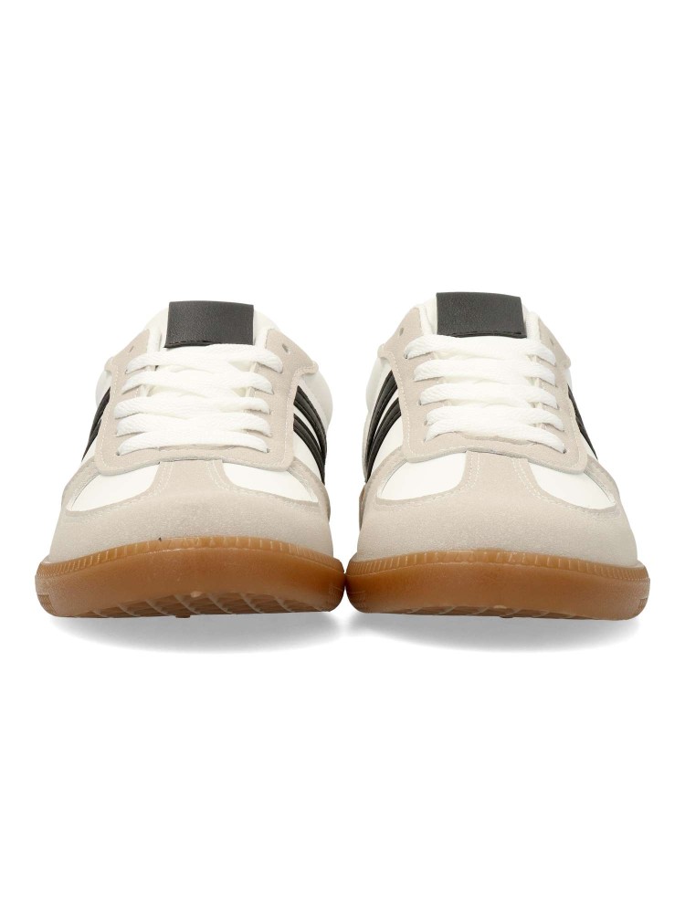 Zapatillas deportivas de hombre, estilo casual. Cierre de cordones. Sneakers fabricado en piel sintética, con suela de goma color caramelo. Color blanco-negro. Plantilla acolchada y extraíble. Diseño sport, ideal con tus outfits urbanos de temporada.