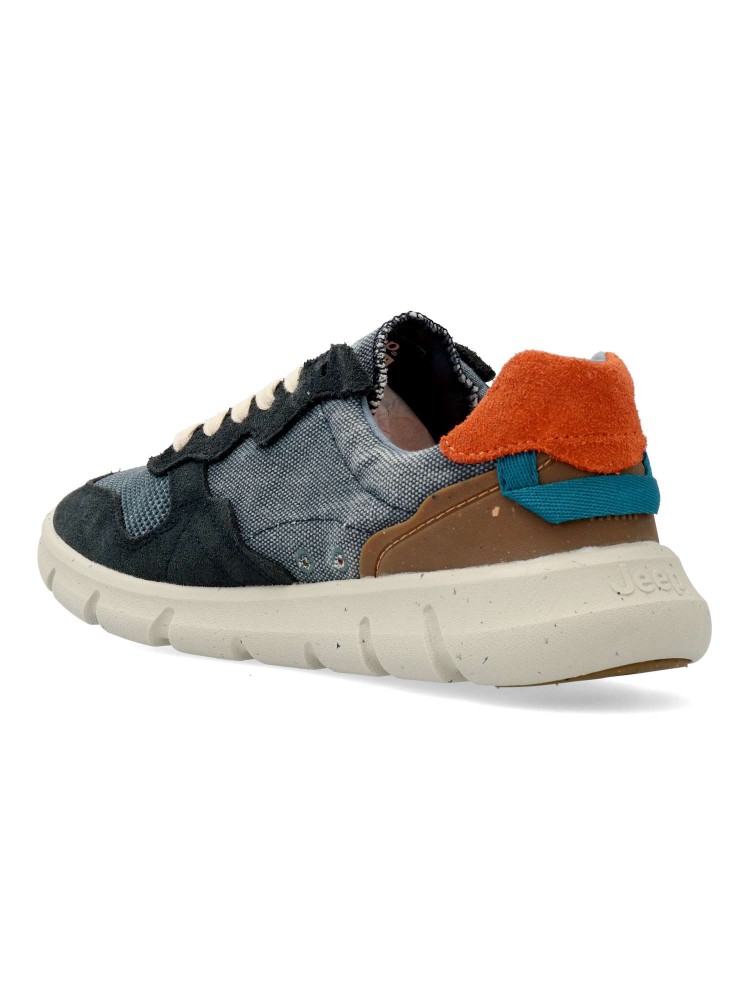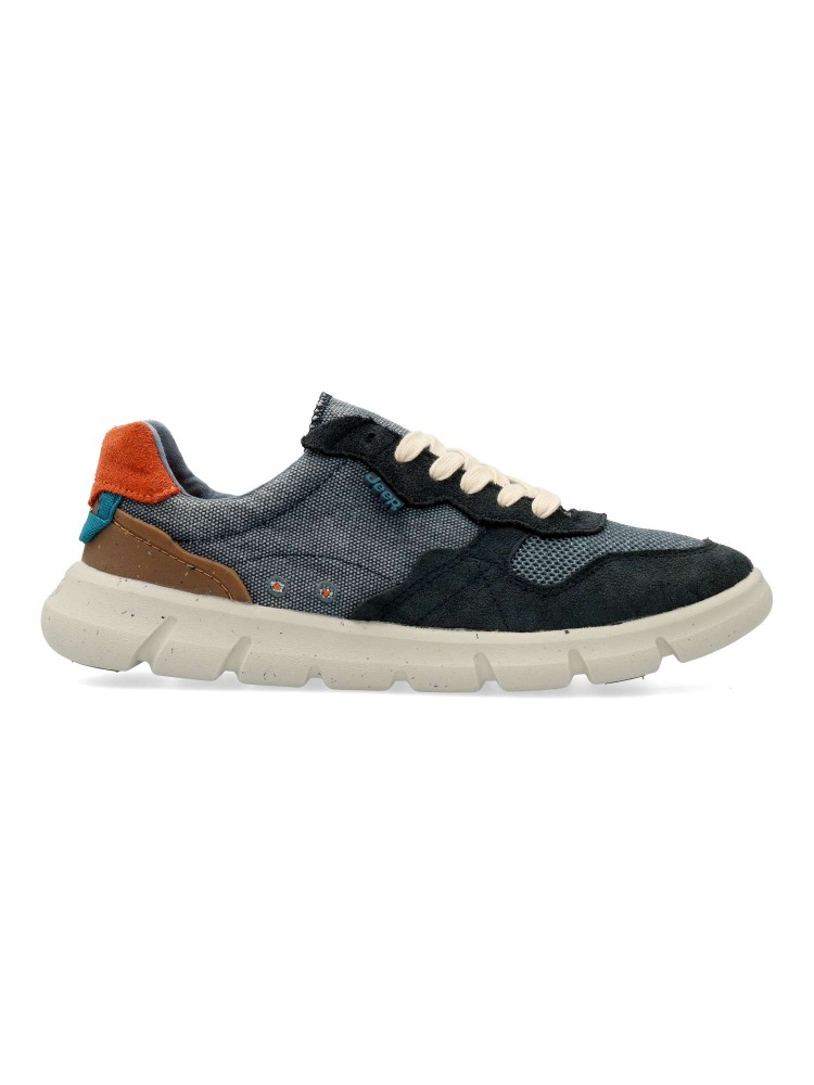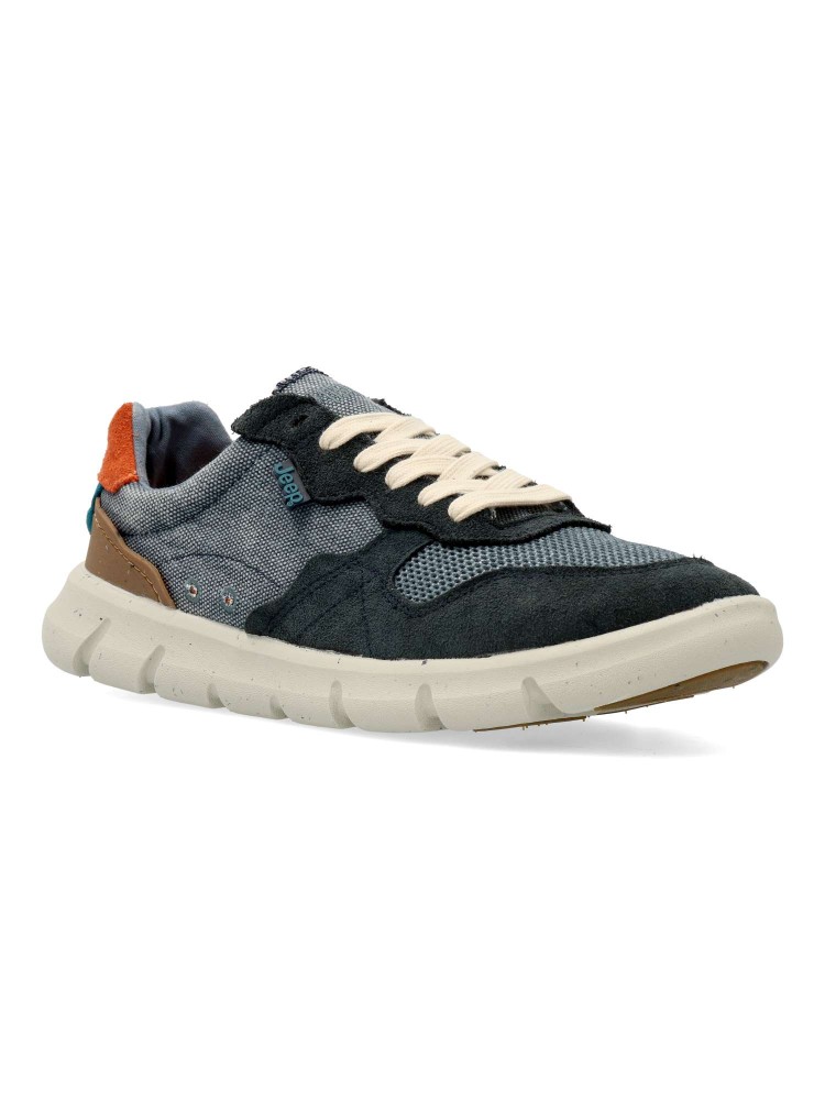 Zapatilla deportiva de hombre estilo casual. Cierre de cordones. Sneakers cómodo, fabricado en piel serraje y textil. Suela de goma. Color azul. Pueden usarse para distintos planes y disfrutar del buen tiempo con toda comodidad.