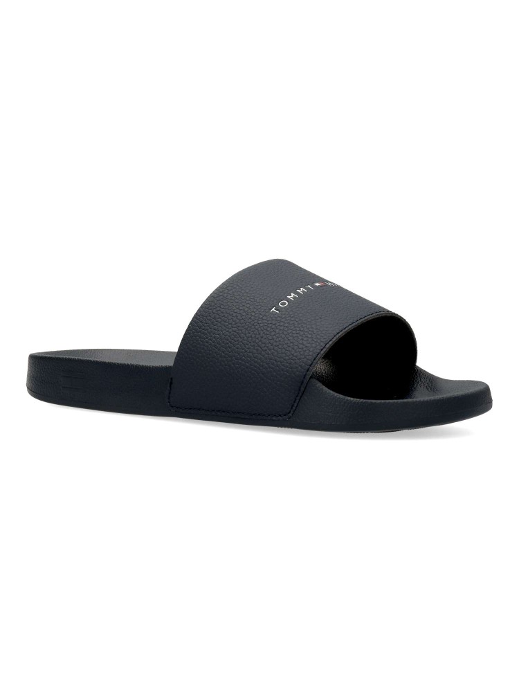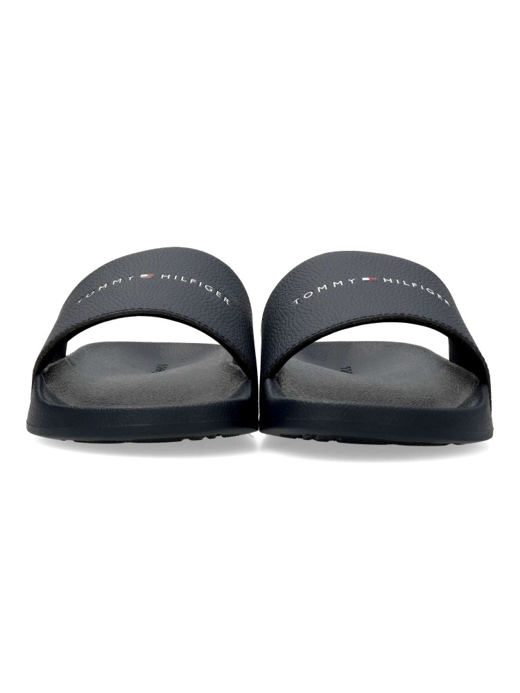 Chanclas con plantilla moldeada EVA, ideales para la playa o la piscina. Exterior de piel sintética. Suela EVA. Pala acolchada con forro textil suave. Color marino. Chanclas de estética deportiva con detalles distintivos de Tommy Hilfiger.