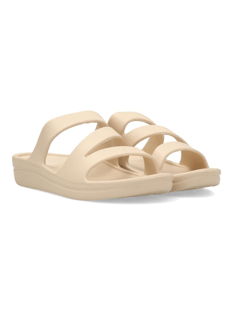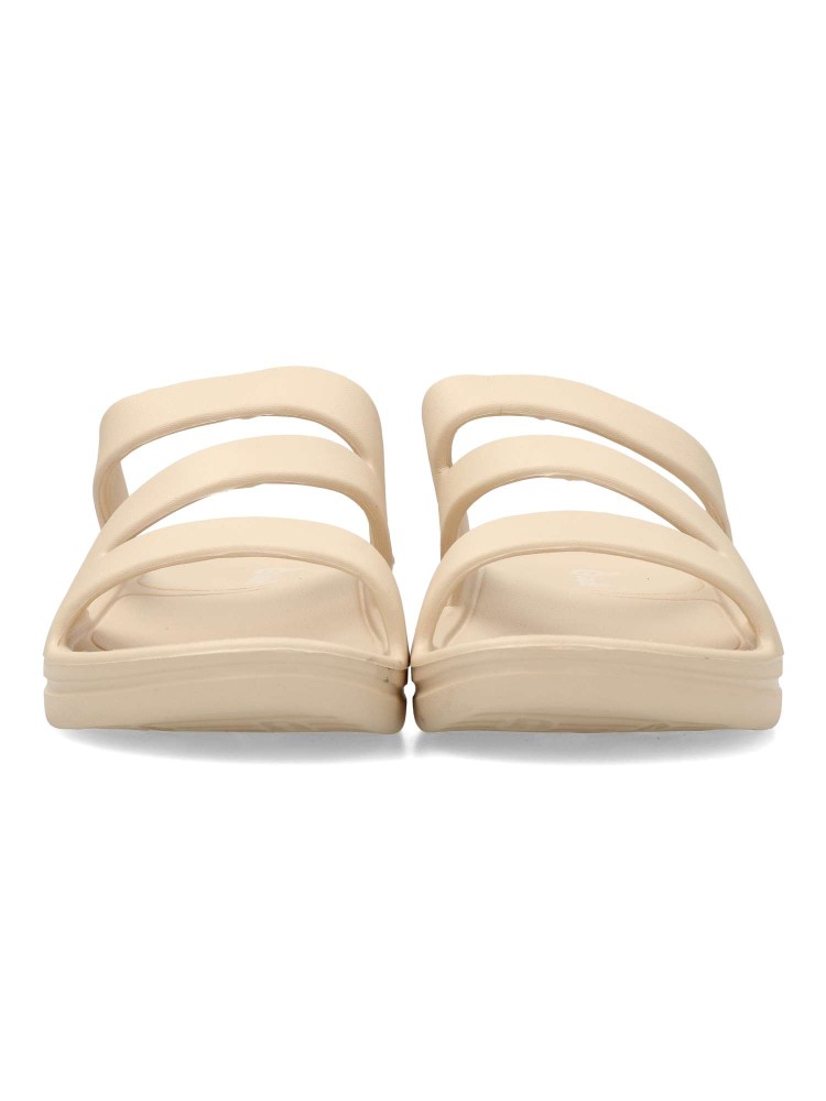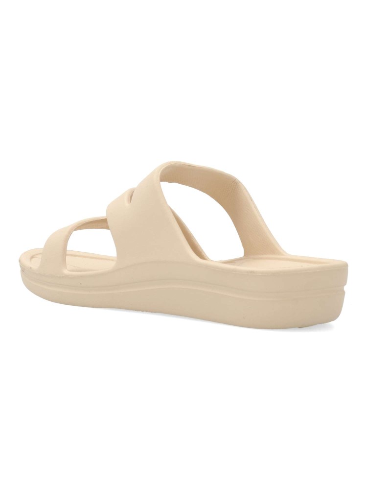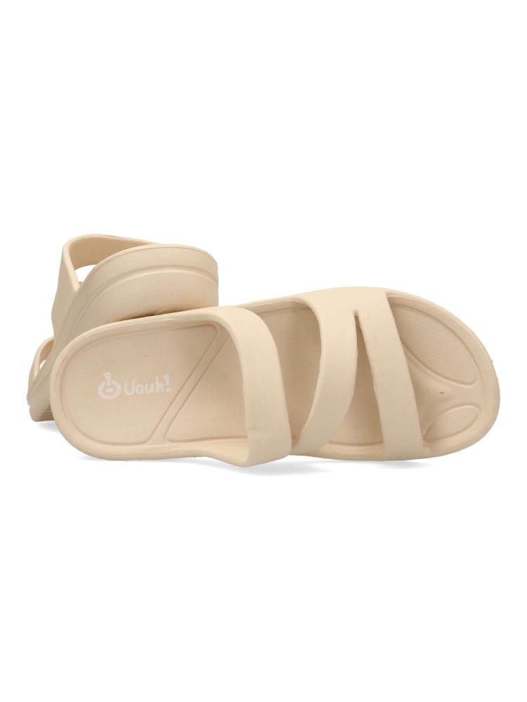Chancla de playa para mujer, tipo sandalia de tiras. Fabricado en goma EVA, material duradero, flexible, impermeable, ultraligero y fácil de limpiar y mantener. Color beige. Ideales para tus aventuras de verano en la playa y la piscina.