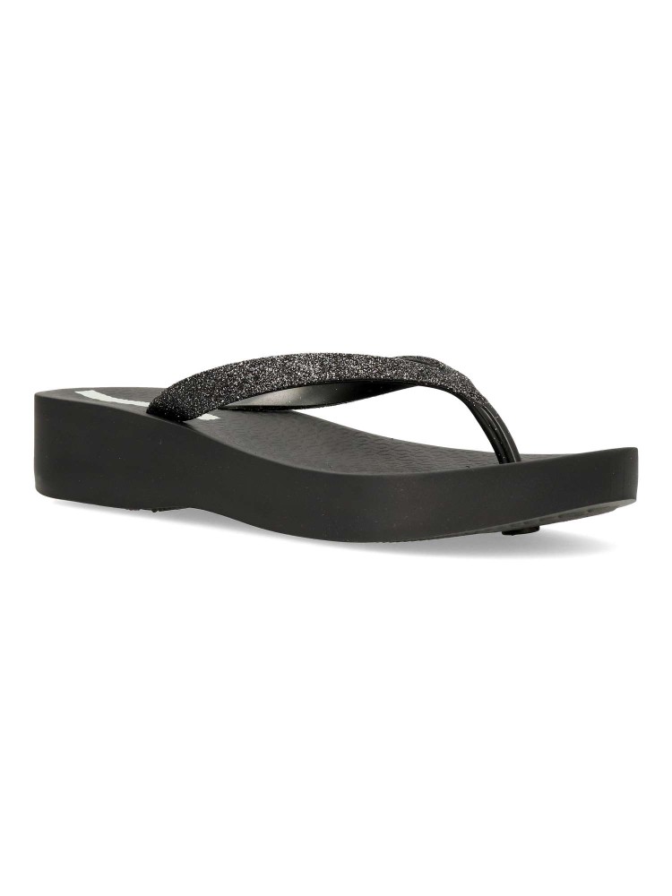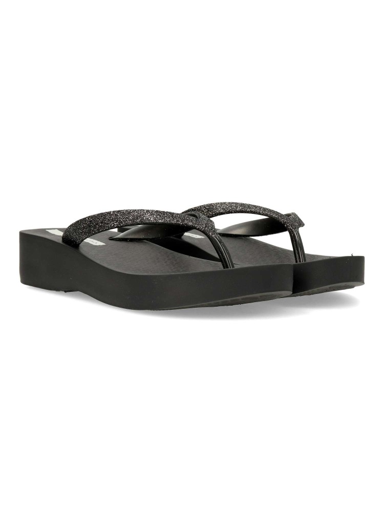 Chancla de playa cómoda para mujer, con brillo en las tiras. Chanclas esclava tipo sandalia, ideal para la playa o la piscina, suela de goma gruesa, anatómica y flexible. Chanclas brasileñas innovadoras, elegantes y versátiles. Color negro.