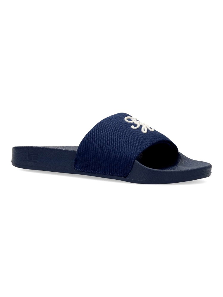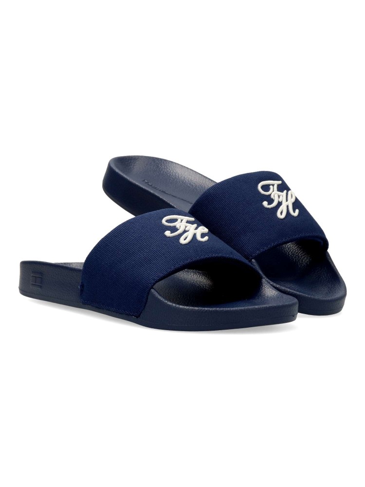 Estas chanclas destacan por la plantilla anatómica, la pala en lona de puro algodón y el llamativo logo de Tommy Hilfiger bordado en fuente Script. Suela de goma EVA. Detalles distintivos de Tommy Hilfiger.