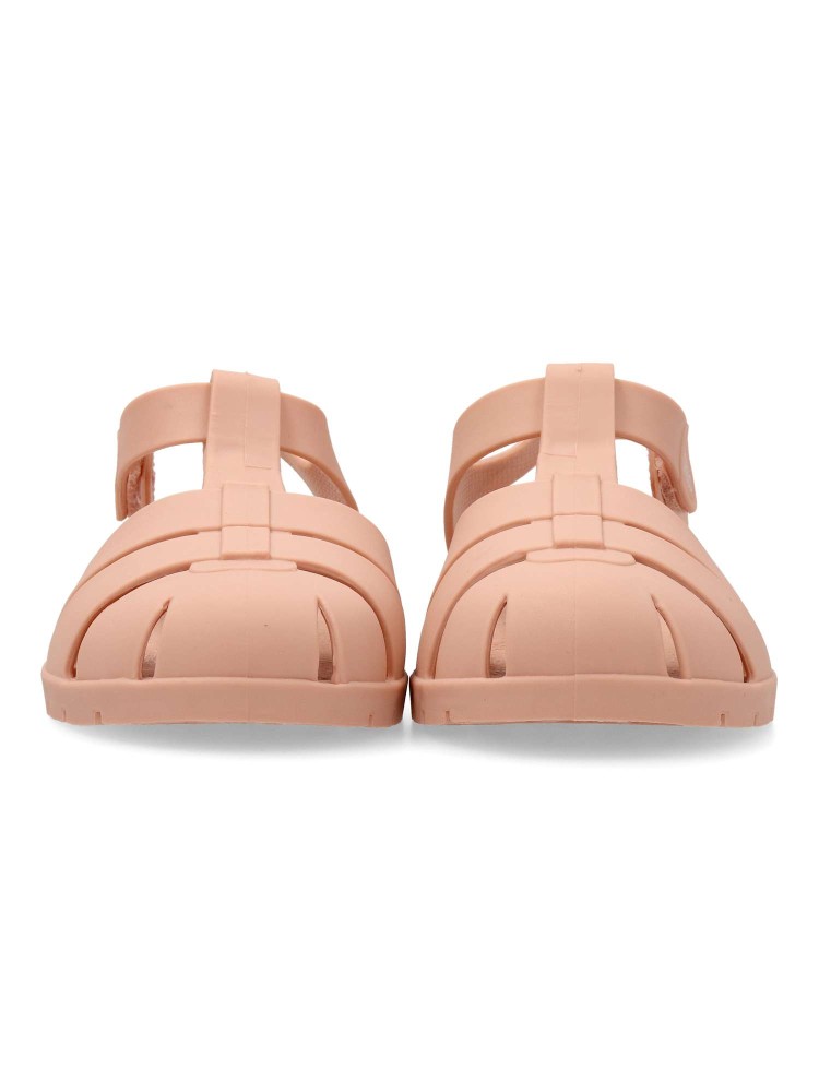 Sandalia cangrejeras con punta cerrada, hecha de material plástico suave y mate. Forma Redondeada. Ajustable con sistema de cierre fácil con adhesivo. Diseño ligero, flexible, cómodo y practico, para que los peques no paren de jugar y disfrutar.