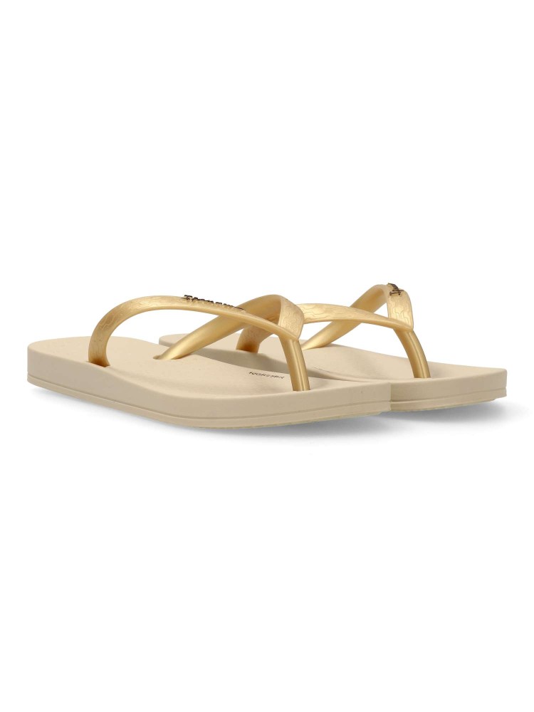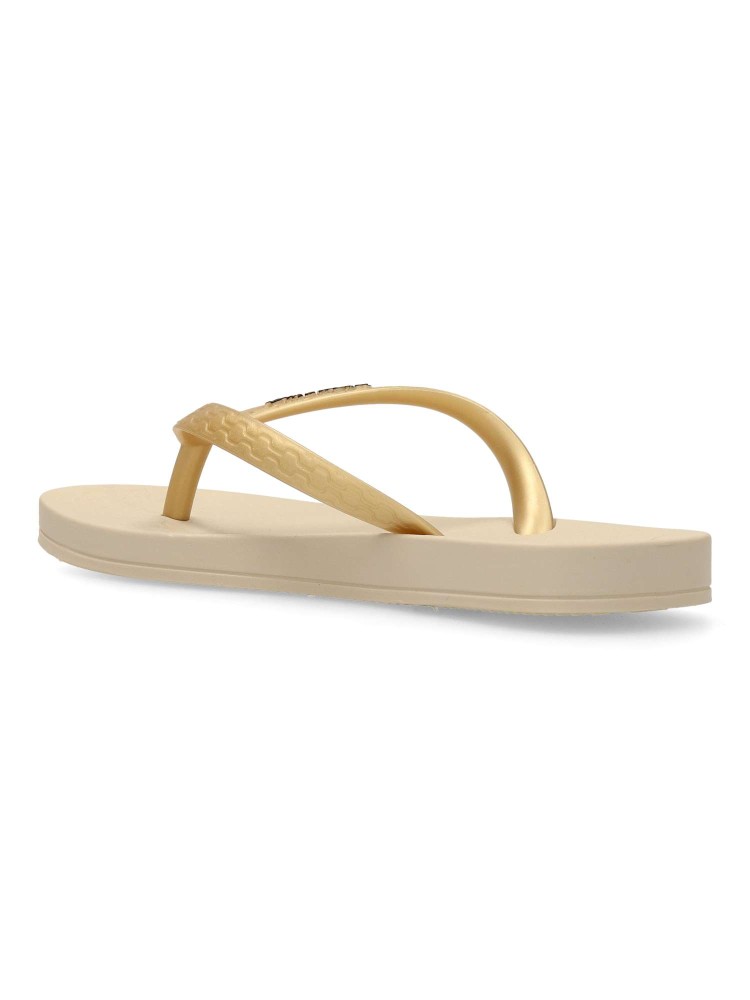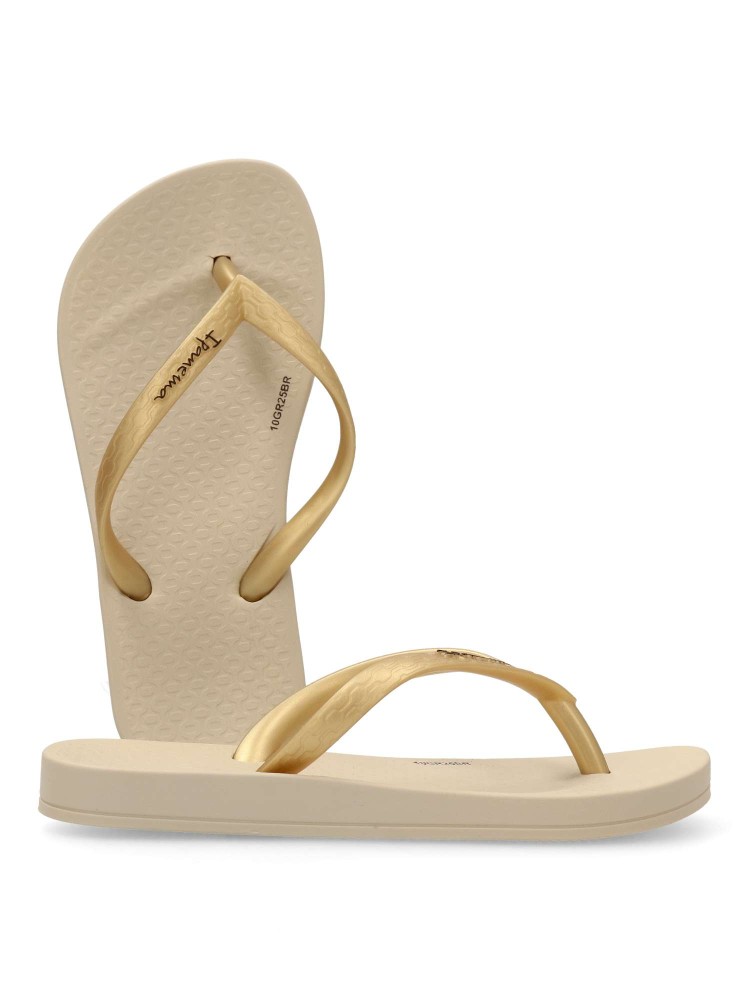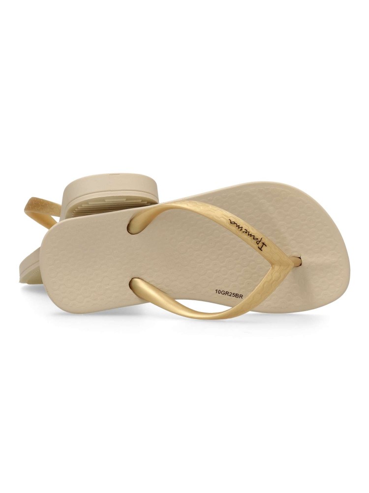 Chancla de playa cómoda para niña Chanclas tipo esclava, ideal para la playa o la piscina, suela de goma anatómica, flexible y ligera. Chanclas brasileñas innovadoras y elegantes. Color beige-oro. Diseños originales y cómodos, para disfrutar del verano.