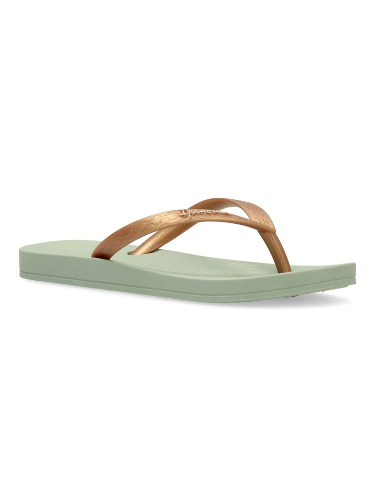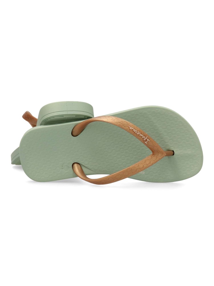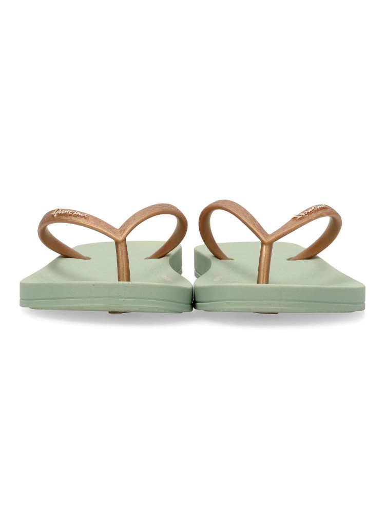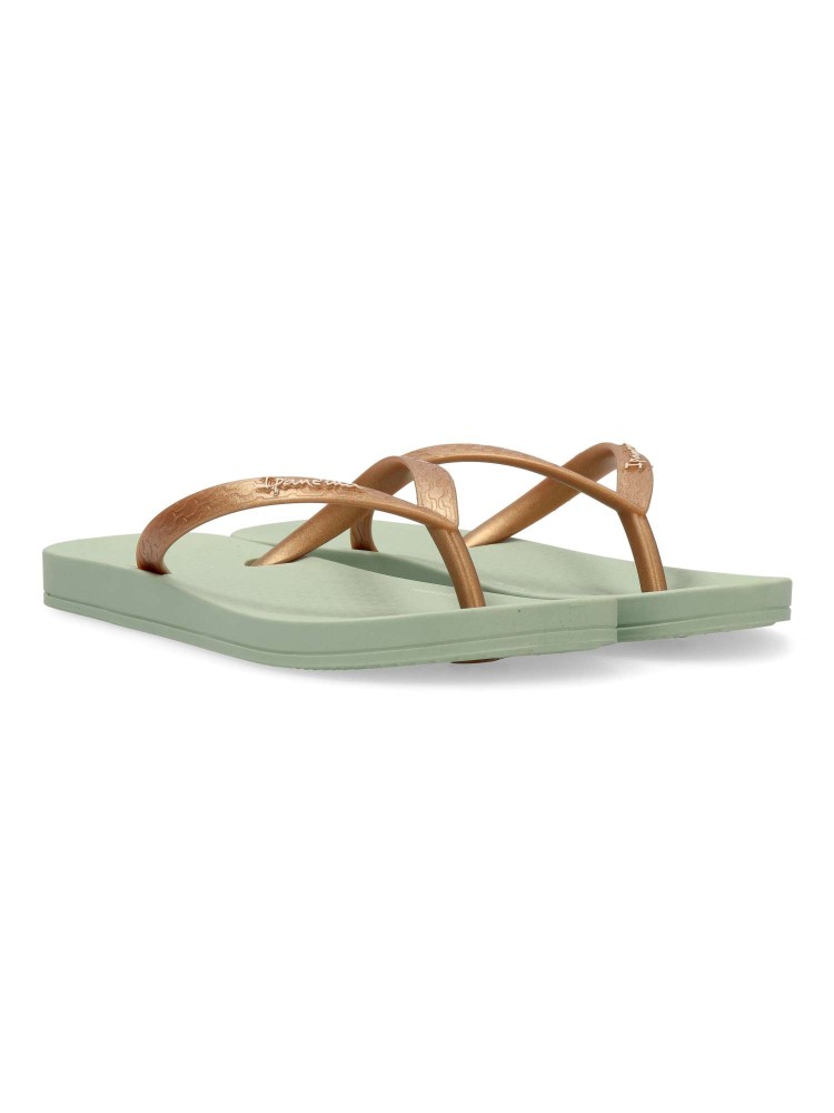 Chancla de playa cómoda para niña Chanclas tipo esclava, ideal para la playa o la piscina, suela de goma anatómica, flexible y ligera. Chanclas brasileñas innovadoras y elegantes. Color verde-oro. Diseños originales y cómodos, para disfrutar del verano.