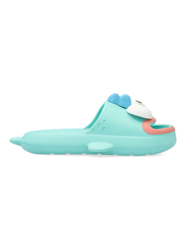 Chancla de playa cómoda, ligera y flexible. Modelo de pala, ideal para la playa y la piscina. Sandalia fabricada en goma EVA. Color azul. Una sandalia con forma de pez con los ojos saltones. Sensación de confort y libertad para tus pies.