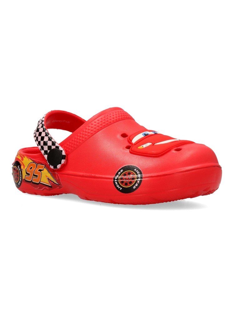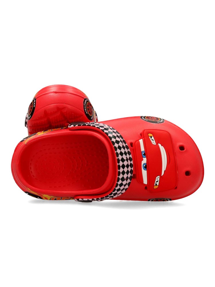 Chancla de playa zueco para niño. Fabricado en goma EVA. Tira trasera para una mejor sujeción del pie. Disponible en color rojo. Modelo cómodo, ligero, fresco y transpirable para el disfrute de los fans de Cars.