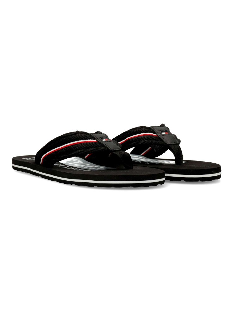 Chancla de playa para hombre. Modelo cómodo, fabricada en textil con suela de goma eva. Modelo tipo esclava color negro y detalle de cinta distintiva. Ideal para la playa o piscina. Tommy Hilfiger. Hilfiger Beach Sandal.