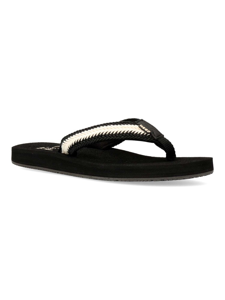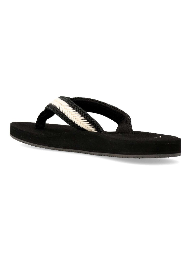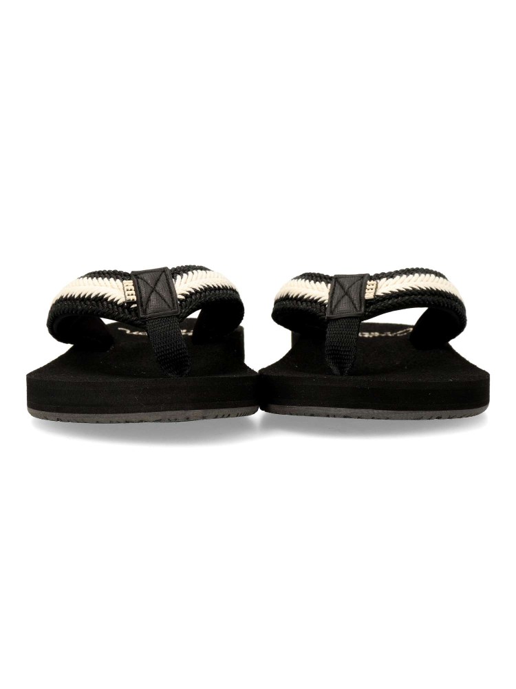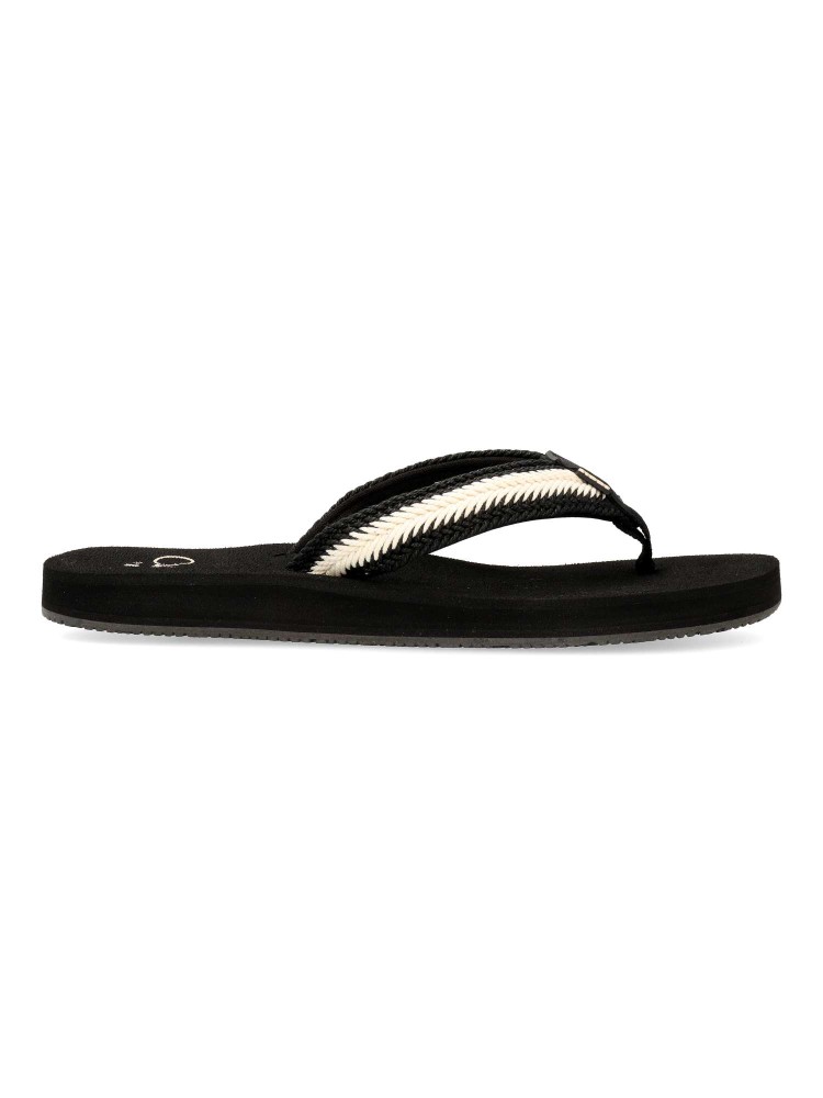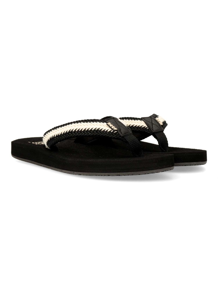Chancla dedo de playa para mujer, tipo sandalia. Tiras fabricadas en textil reciclado. Combinan amortiguación con soporte con efecto rebote, y una suela de goma esponjosa ligera, aunque muy resistente. Ideal para la playa, piscina y tus paseos de verano.