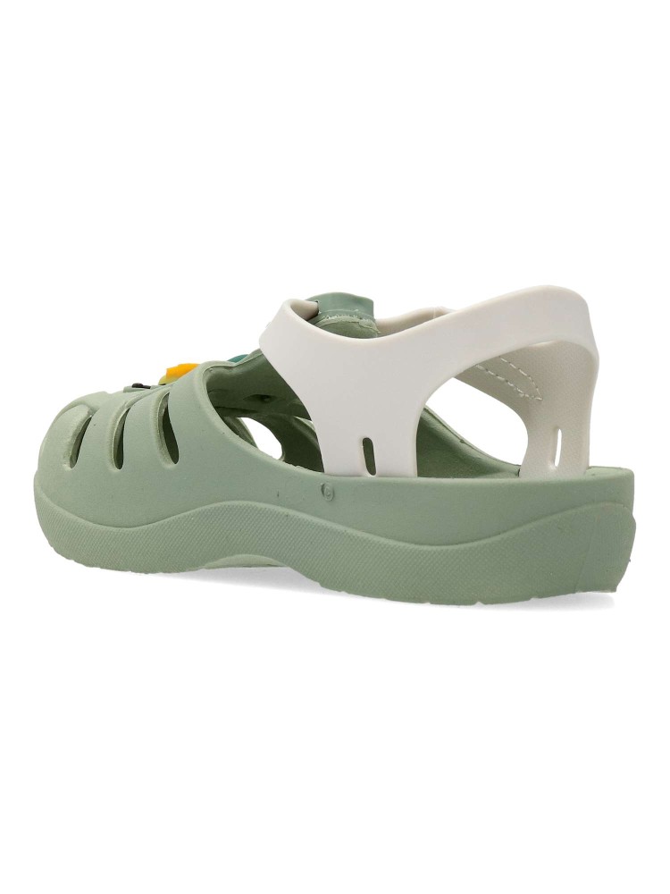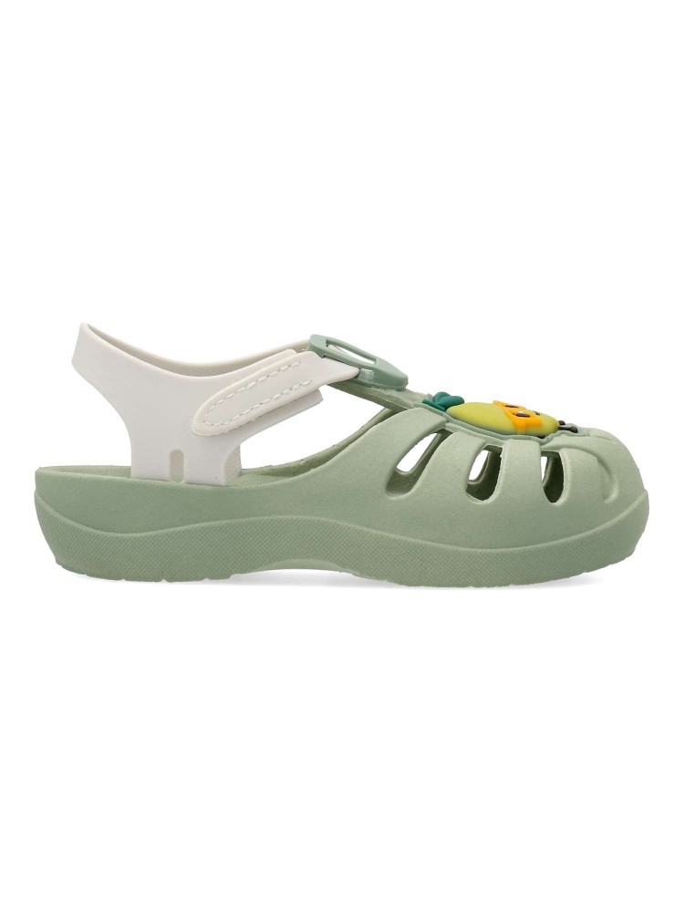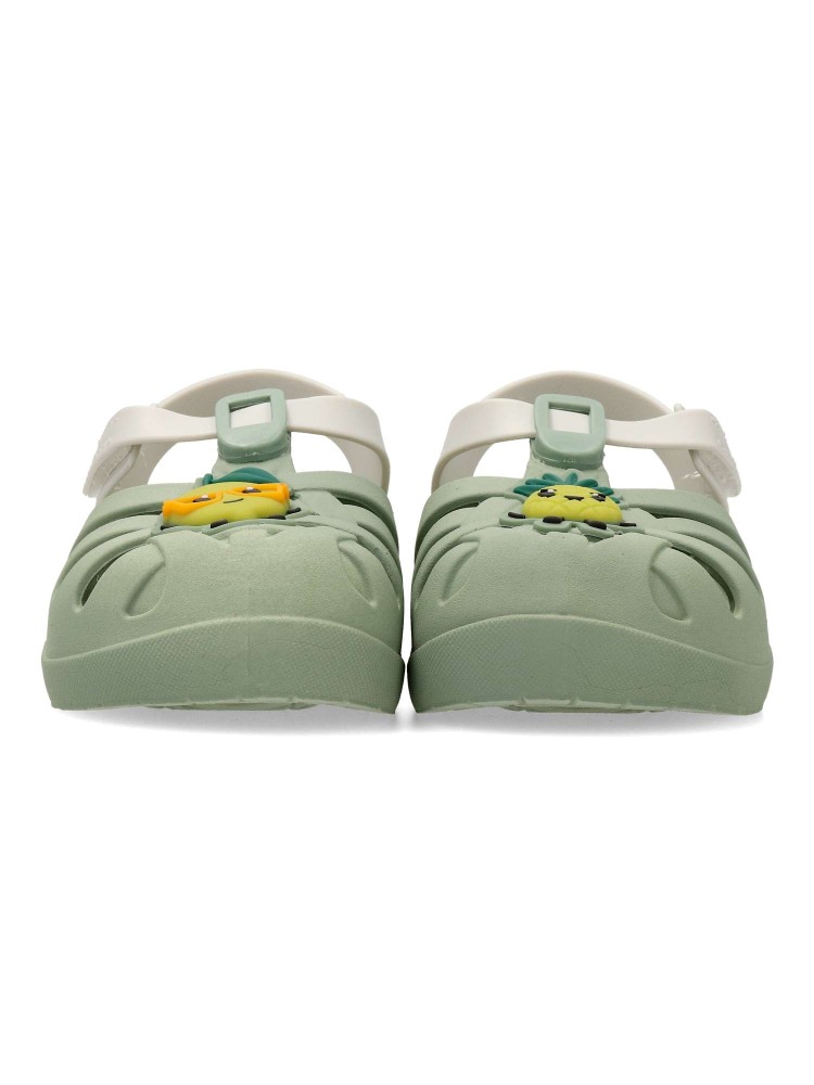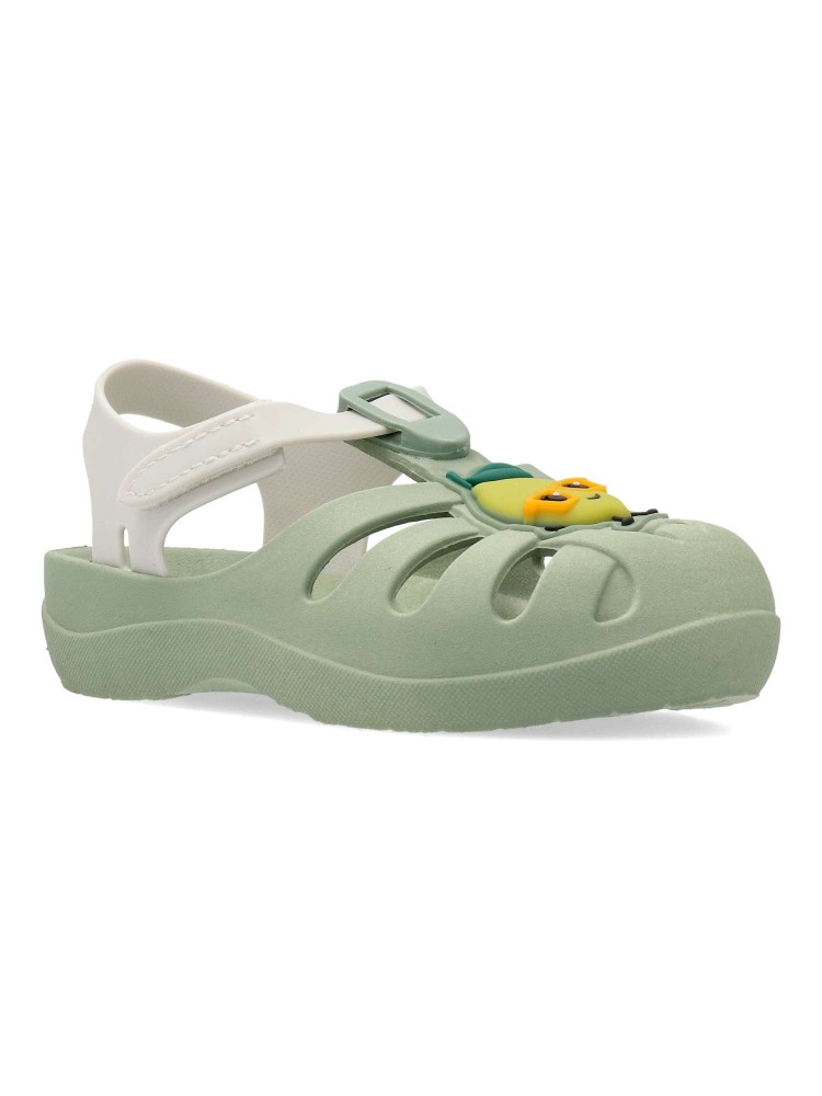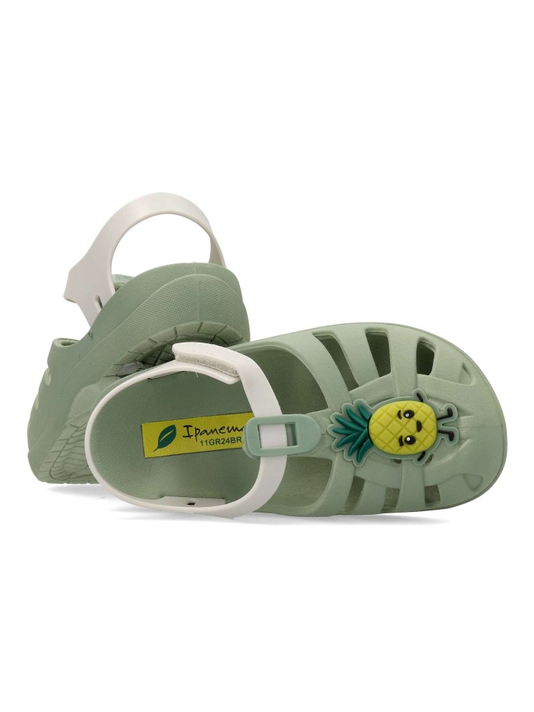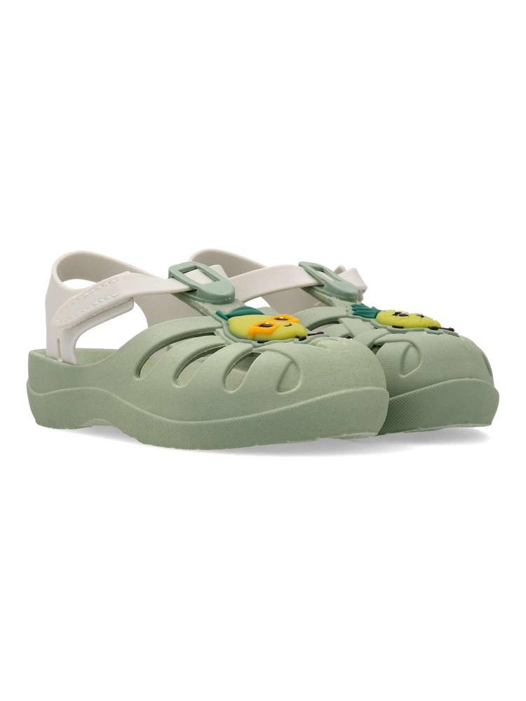 Chancla de playa cómoda para niño. Chanclas tipo cangrejera, ideal para la playa o la piscina, suela de goma anatómica, flexible y ligera. Chanclas brasileñas innovadoras y divertidas, para los peques. Disponible en color verde. Limón 3D. Modelo vegano.