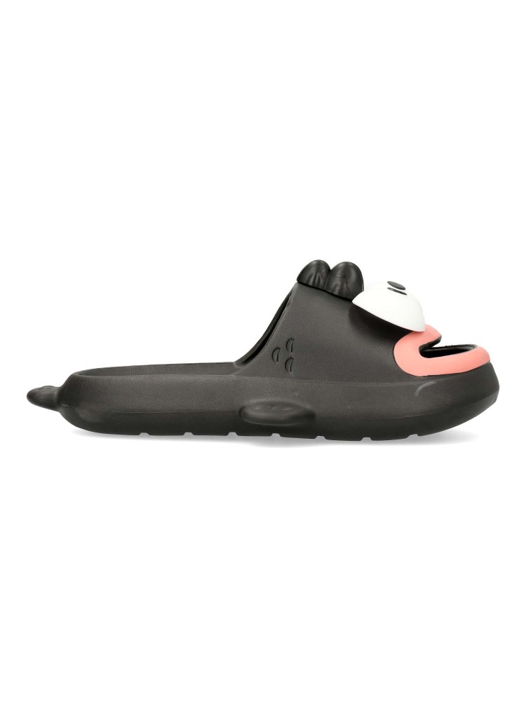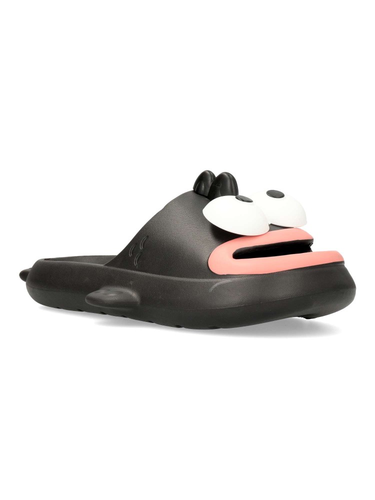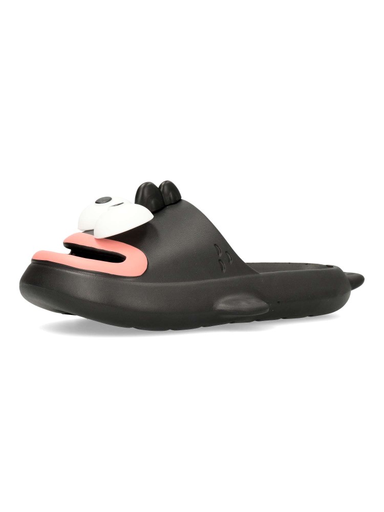 Chancla de playa cómoda, ligera y flexible. Modelo de pala, ideal para la playa y la piscina. Sandalia fabricada en goma EVA. Color negro. Una sandalia con forma de pez con los ojos saltones. Sensación de confort y libertad para tus pies.