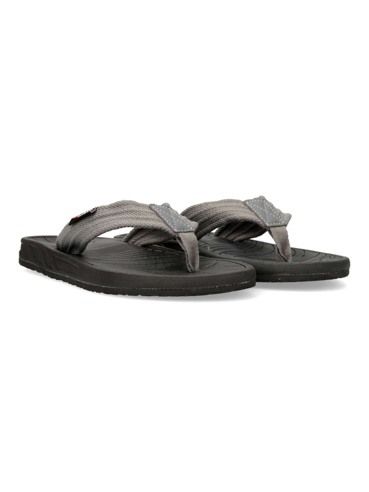 Chancla de hombre tipo sandalia. Fabricada en textil con planta EVA y suela de goma. Disponible en color negro-gris. Sandalia que ofrece máximo confort, ideal en tus paseos de verano por la playa.