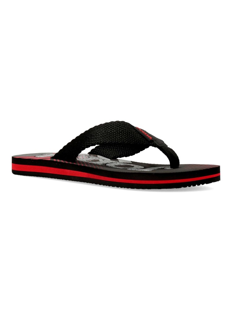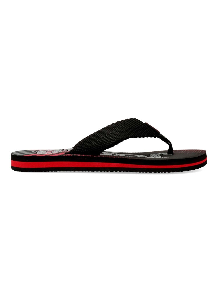 Chancla para hombre. Modelo tipo esclava ideal para la playa y piscina. Color negro. Fabricada en material textil resistente, con suela de espuma ligera y flexible, para mayor confort sin precuparte por el peso. Fáciles de limpiar y de secado rápido.