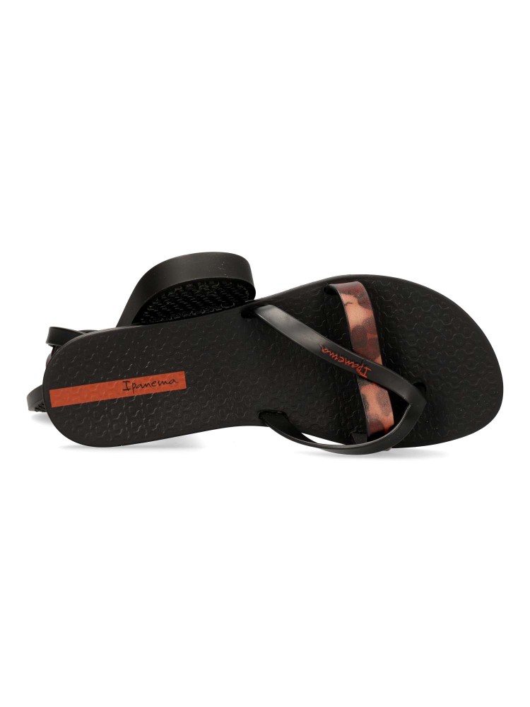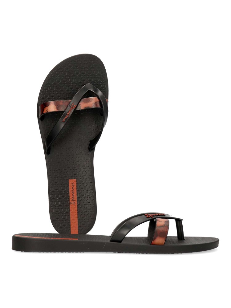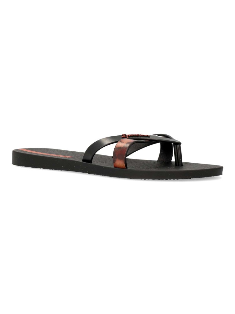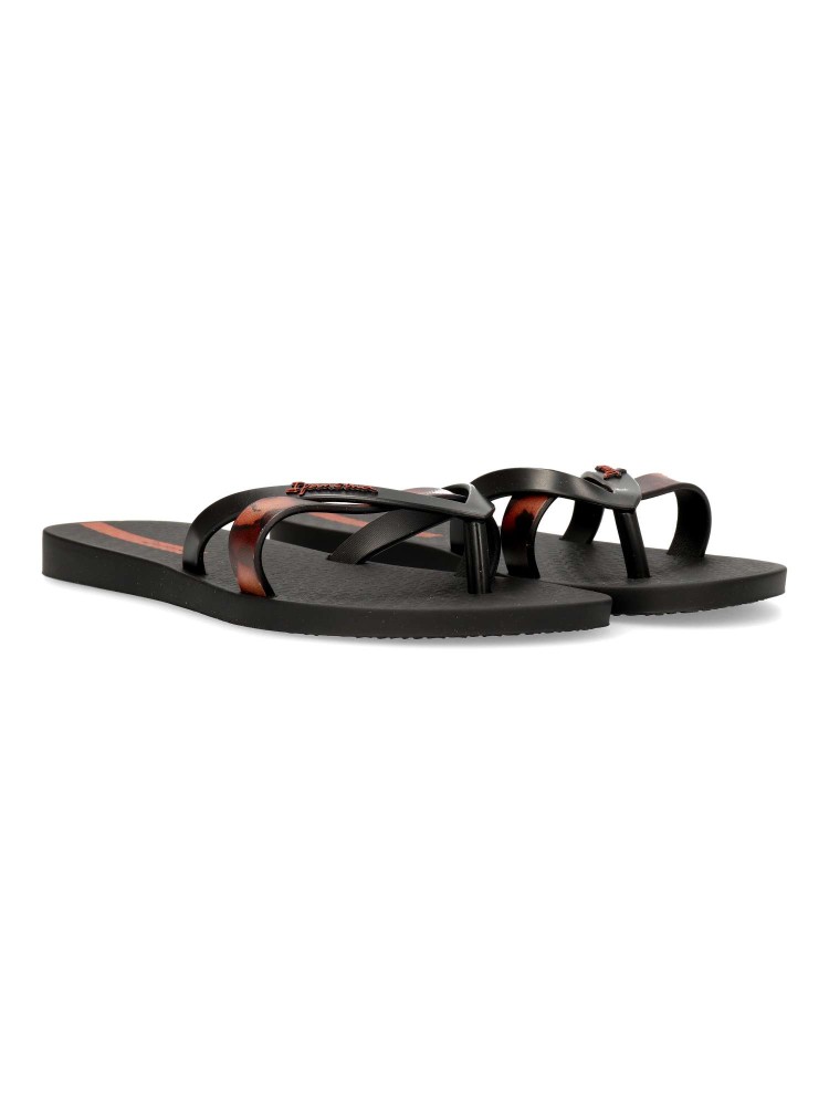 Chancla de playa cómoda para mujer. Chanclas tipo esclava, ideal para la playa o la piscina, suela de goma suave, flexible y ligera. Chanclas brasileñas innovadoras y elegantes. Disponible en color negro con detalle estampado. IPANEMA.