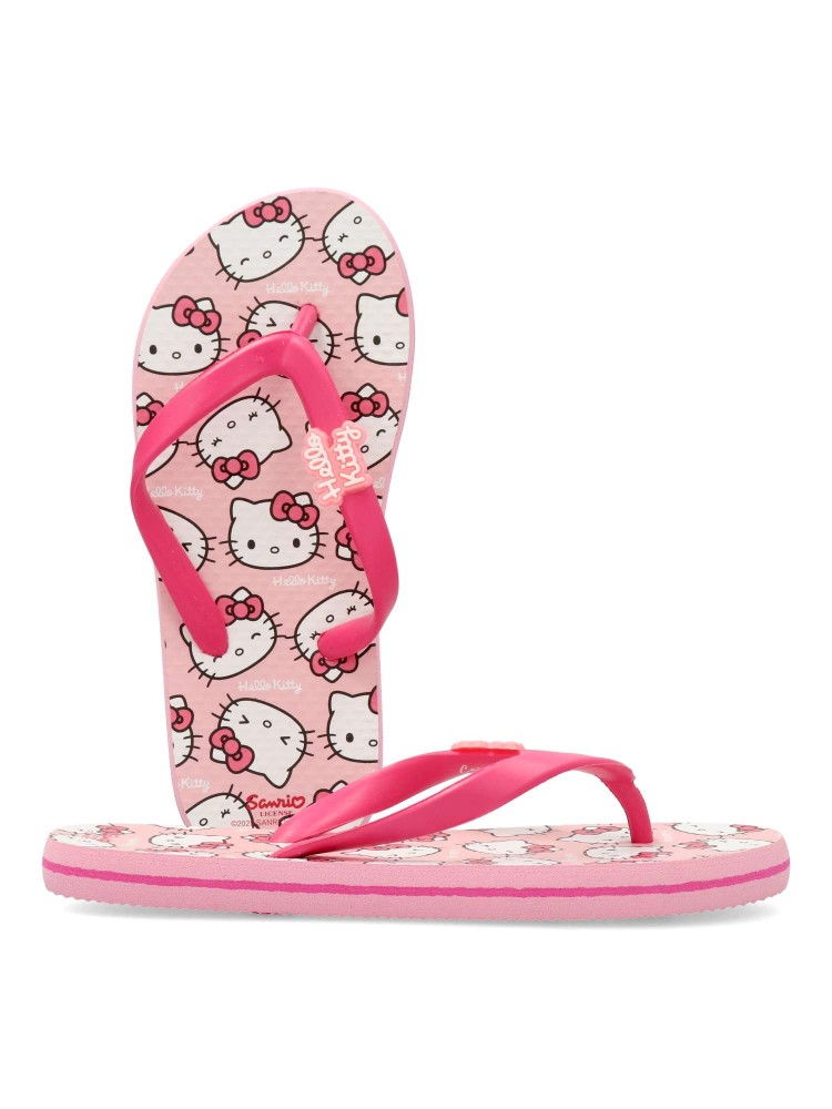 Chancla de playa para niña. Modelo tipo esclava, ideal para la playa y la piscina. Fabricado en goma y goma eva. Disponible en color rosa-fucsia. Diseñado para el disfrute y confort de las niñas. Estampado Hello Kitty.