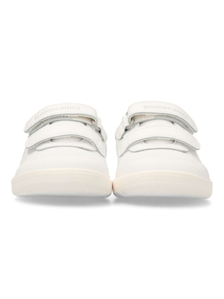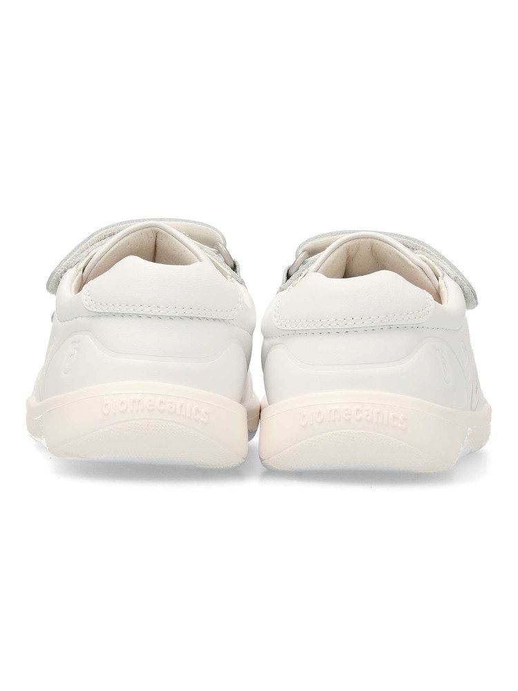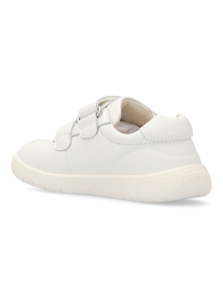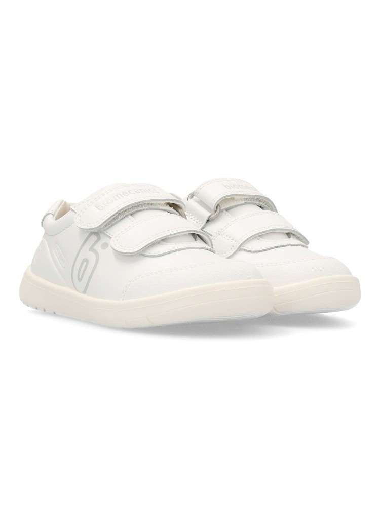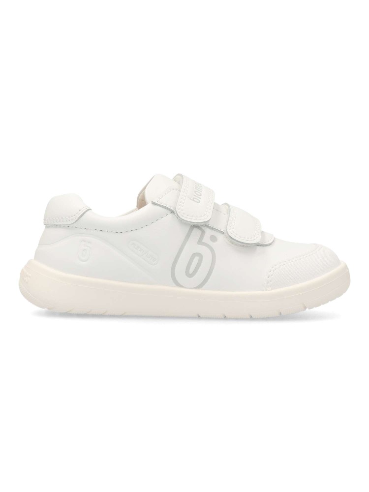 Pies libres, cómodos y protegidos. Doble tira adherente, suela plana, puntera reforzada y diseño respetuoso con el crecimiento natural. Plantilla es antibacteriana y transpirable. Horma evolutiva pensada para el crecimiento con suavidad y sin presionar.