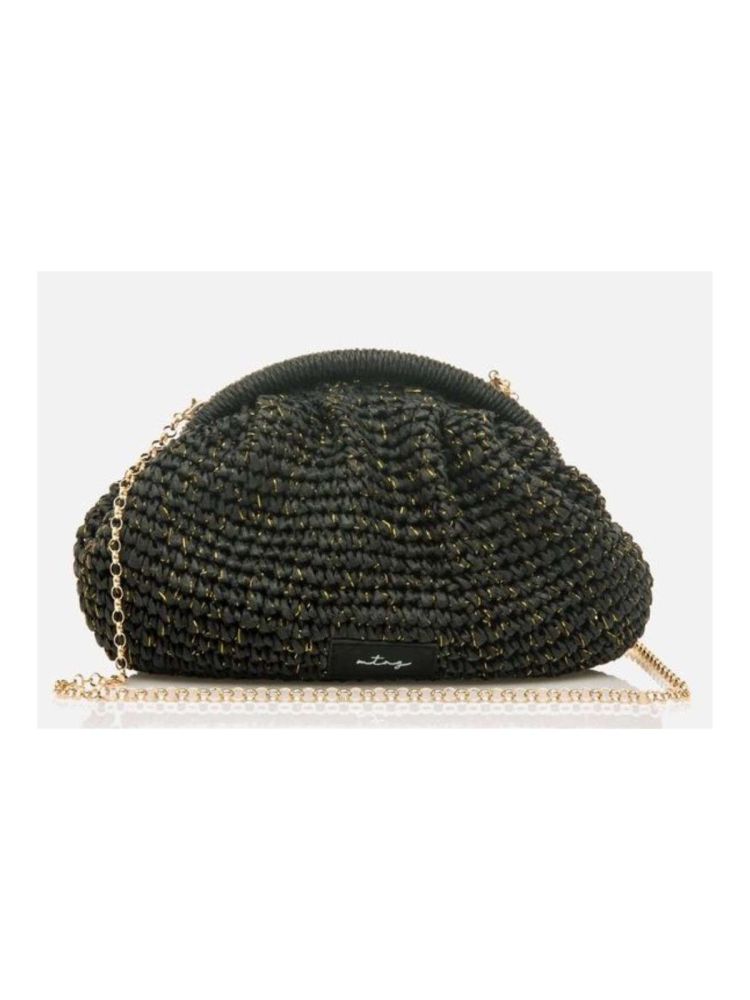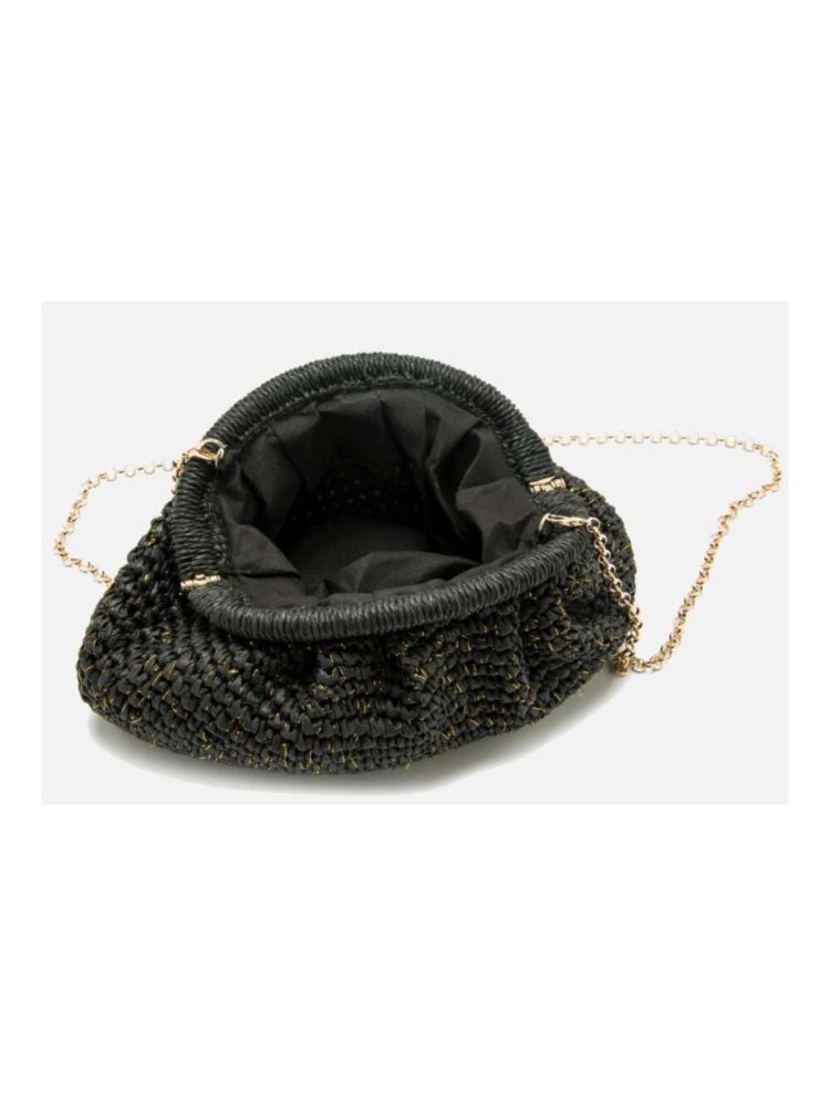 Bolso Salay Mustang para mujer, de estilo clutch. Fabricado en rafia color negro. Incluye un asa de metal para añadir un toque de vestir a tus looks. Medidas: 2 x 28 x 36 cm. (Base, Altura, Ancho).