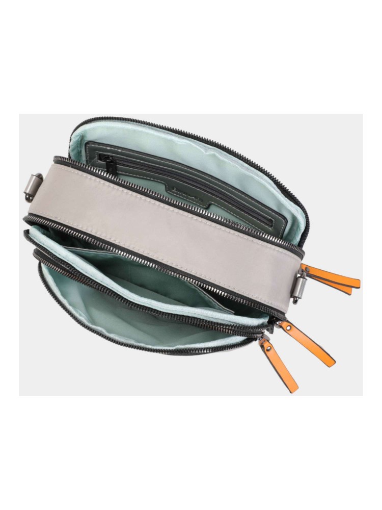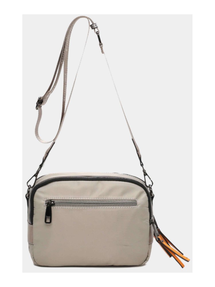Bolso bandolera de mujer, con cierre de cremallera. En él, encontramos diversos bolsillos, uno de ellos con cremallera. Detalles metálicos en color nickel. Medidas: Alto: 18cm Ancho:25cm Fondo:10cm.