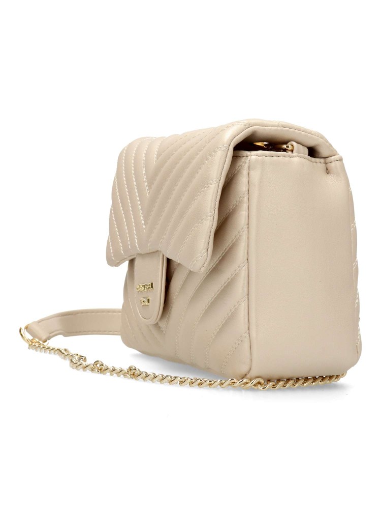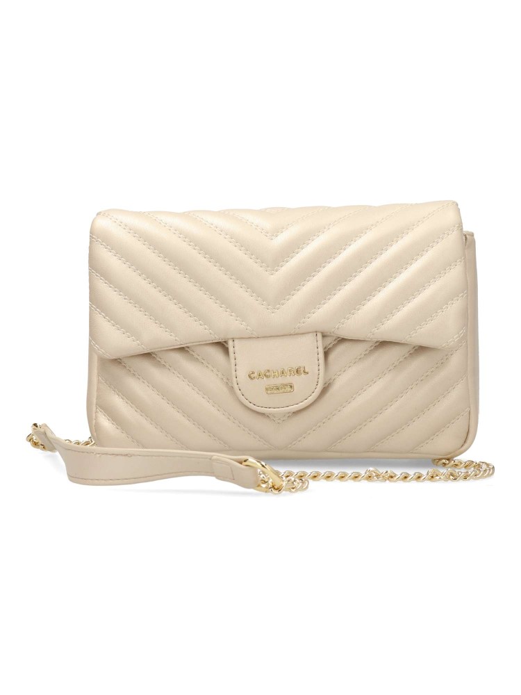 Bolso con novedoso alcolchado y con asa de hombro combinada con cadena. Cierre de cremallera. Logo metálico en la parte delantera. Tiradores personalizados y varios bolsillos interiores. Medidas aproximadas: 21 cm (largo) x 6 cm (ancho) x 14 cm (alto).