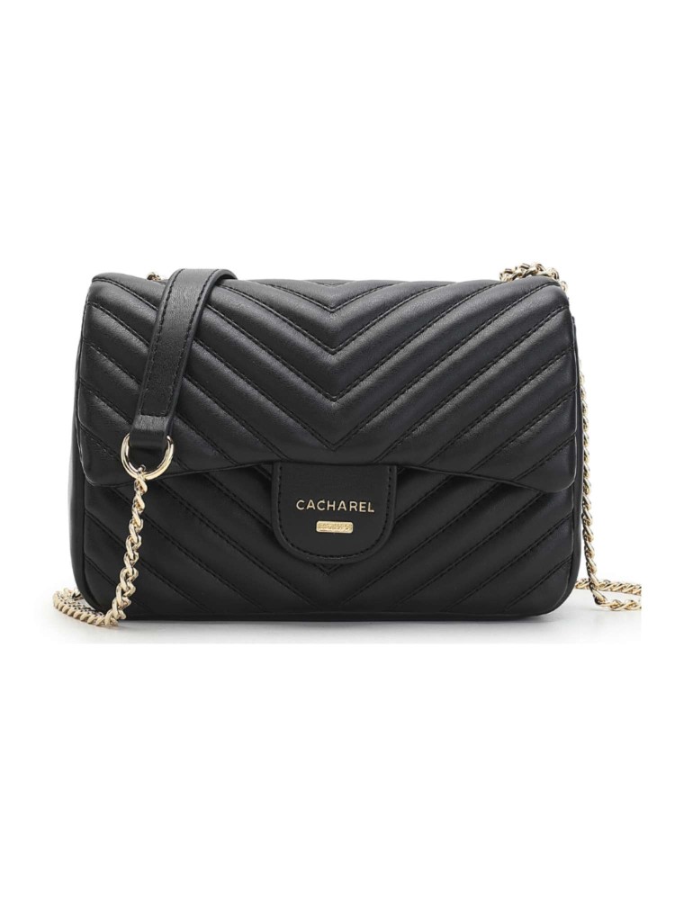 Bolso con novedoso alcolchado y con asa de hombro combinada con cadena. Cierre de cremallera. Logo metálico en la parte delantera. Tiradores personalizados y varios bolsillos interiores. Medidas aproximadas: 21 cm (largo) x 6 cm (ancho) x 14 cm (alto).